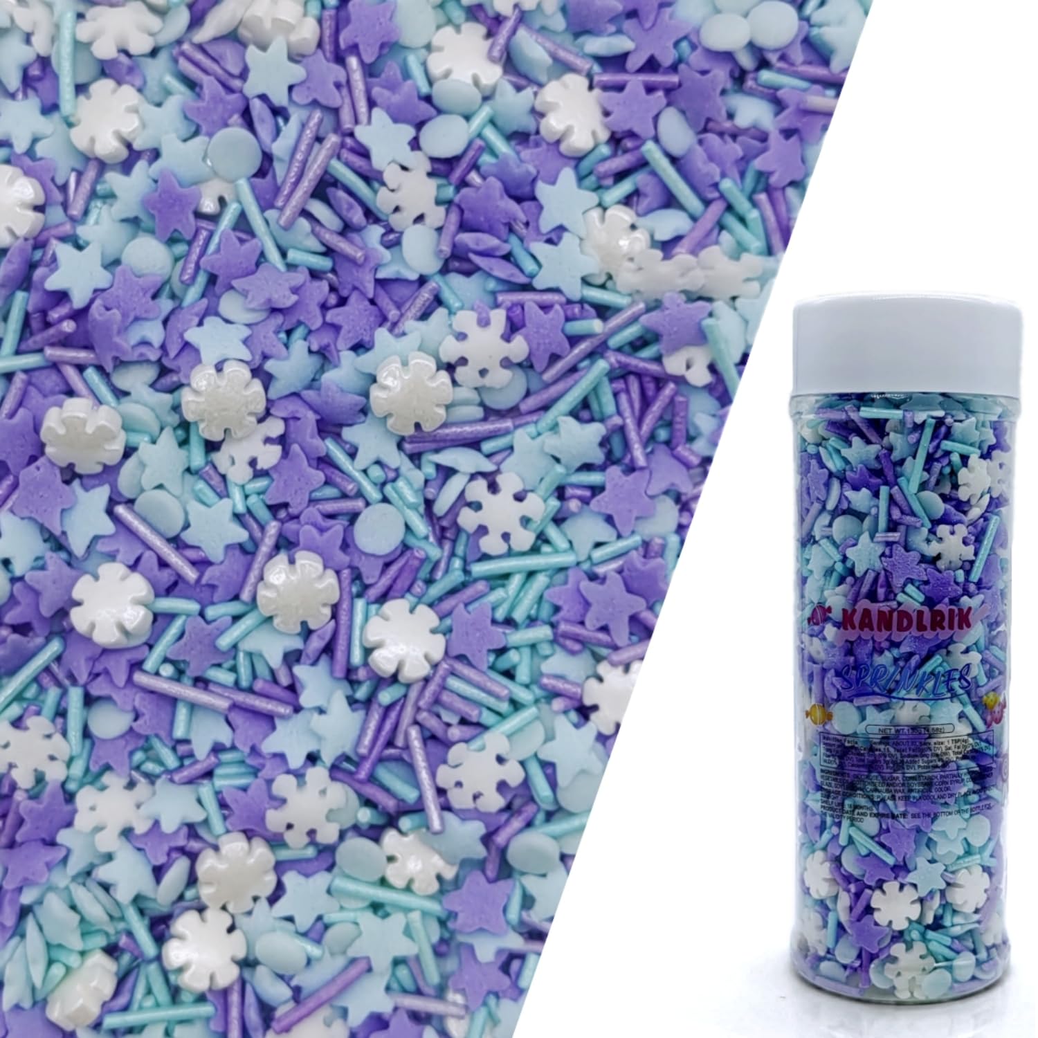 Snowflake Sprinkles Blue & White & Purple Christmas Sprinkles Mixed size snowflake Stars Jimmies CakeCookie Decorating Perfect for Wedding Party Valentine Halloween Christmas Supplies 4.58OZ