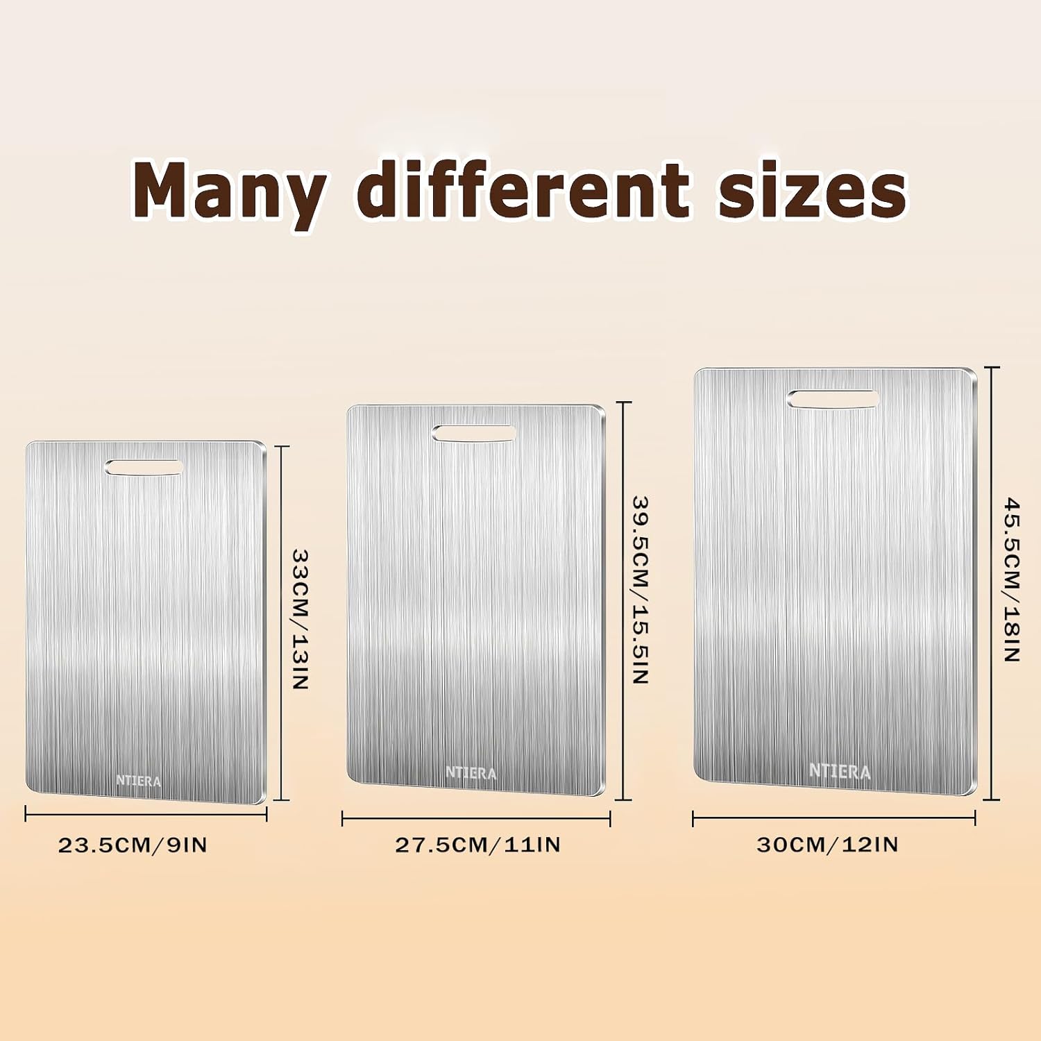 - ăSize DiversityăOur stainless steel Cutting Board collection includes three versatile sizes to match your cooking needs:9*13in,11*15.5in and 12*18in.Please select the large or small cutting board that best suits your needs according to various use scenarios. Rest assured, our range of cutting board sizes is ample to meet your requirements.