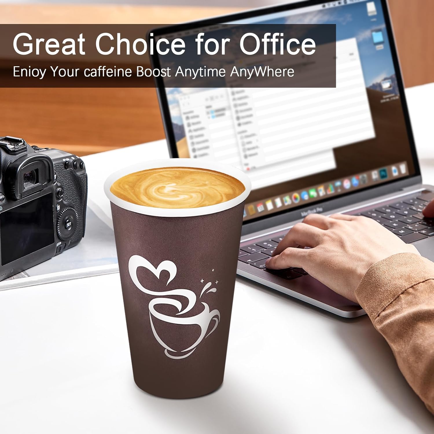 - 【Convenience】The 16 oz paper coffee cups save time and effort, perfect for busy moments. These disposable paper cups are a must-have for a quick and easy drink in any situation, and they can be thrown away after use