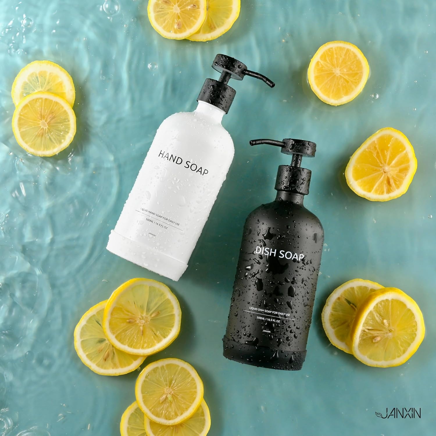 - LUXURY SOAP DISPENSER SET: Transform your kitchen or bathroom decor instantly with our luxurious kitchen soap dispenser set, This set includes two 16.9 OZ/500 premium glass bottles with 2CC stainless steel pumps, two silicone bottom anti-slip pads, one ceramic tray . Great for upgrading your kitchen and bathroom countertops with this stylish soap dispenser set