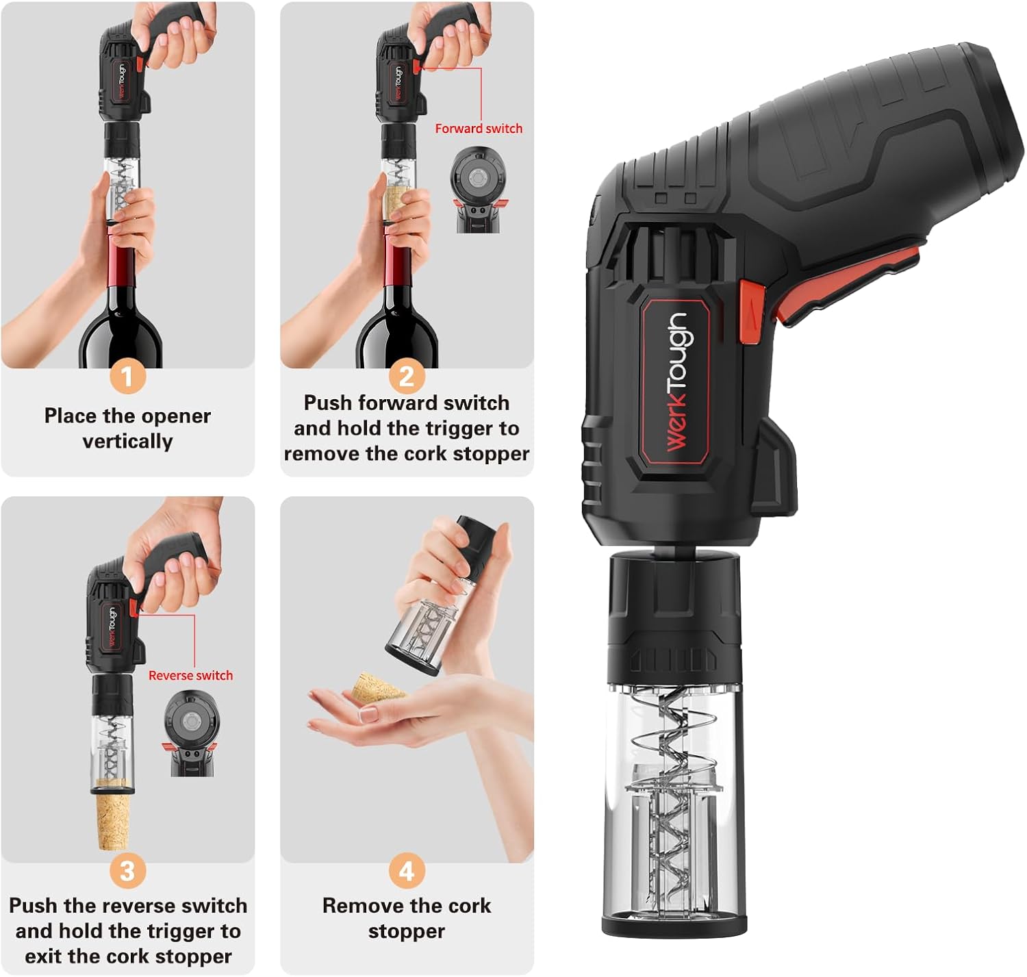 Werktough 4V Electric Corkscrew Wine Opener Set Cordless Screwdriver Battery Powerd with 4 Grill Accessories, Five-in-One Power Tool Kit for Home, Kitchen, and BBQ Lovers
