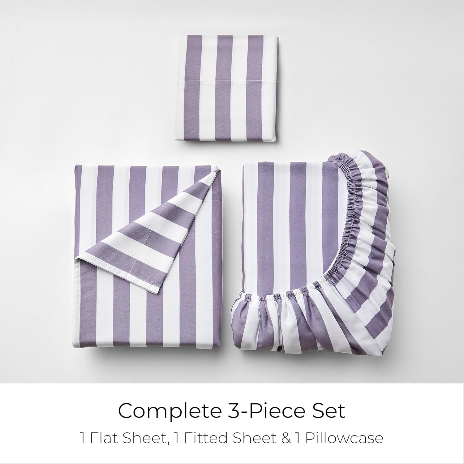 Mellanni Twin XL Sheets Set - 3 PC Iconic Collection Bedding - Hotel Luxury, Soft, Cooling Bed Sheets - Wrinkle, Fade, Stain Resistant (Twin Extra Long, Oxford Stripe Hazy Lilac)