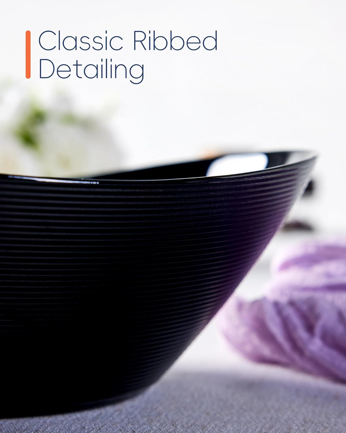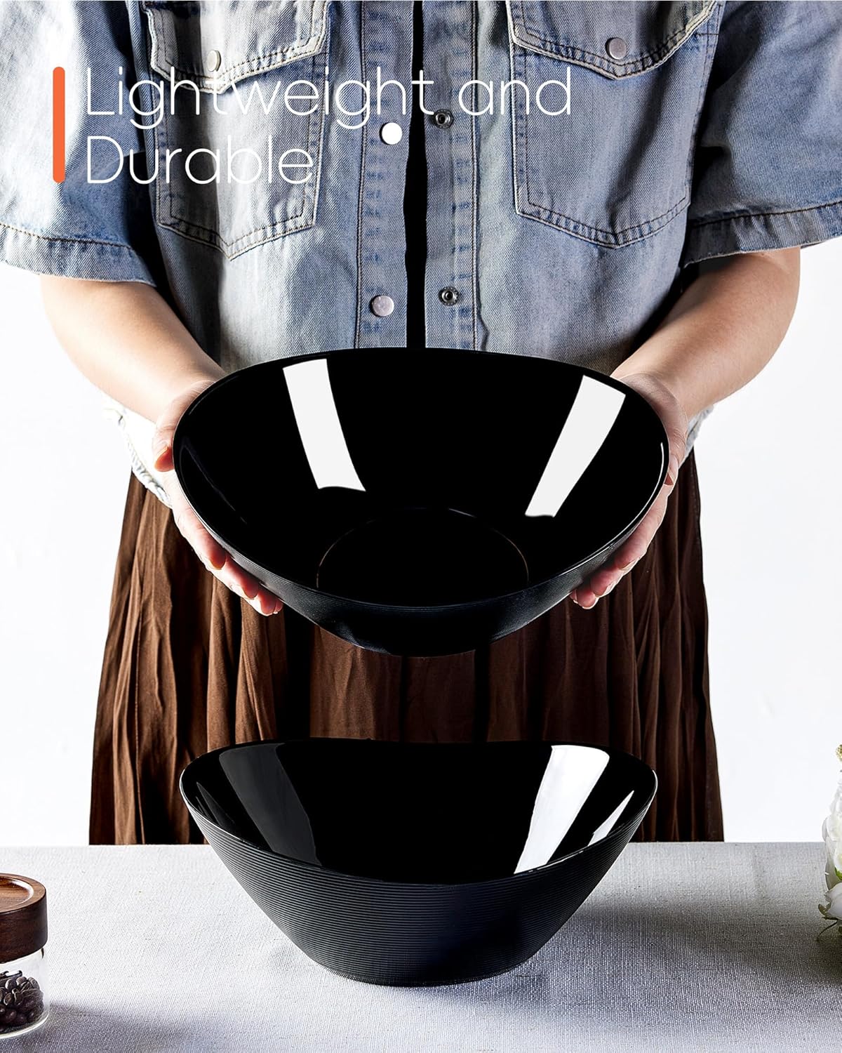 66 OZ Salad Bowl Set of 2, Opal Glass 10 inch Lightweight Serving Dishes for Salad, Fruit, Kitchen Microwave & Dishwasher Safe, Oval Shape Black