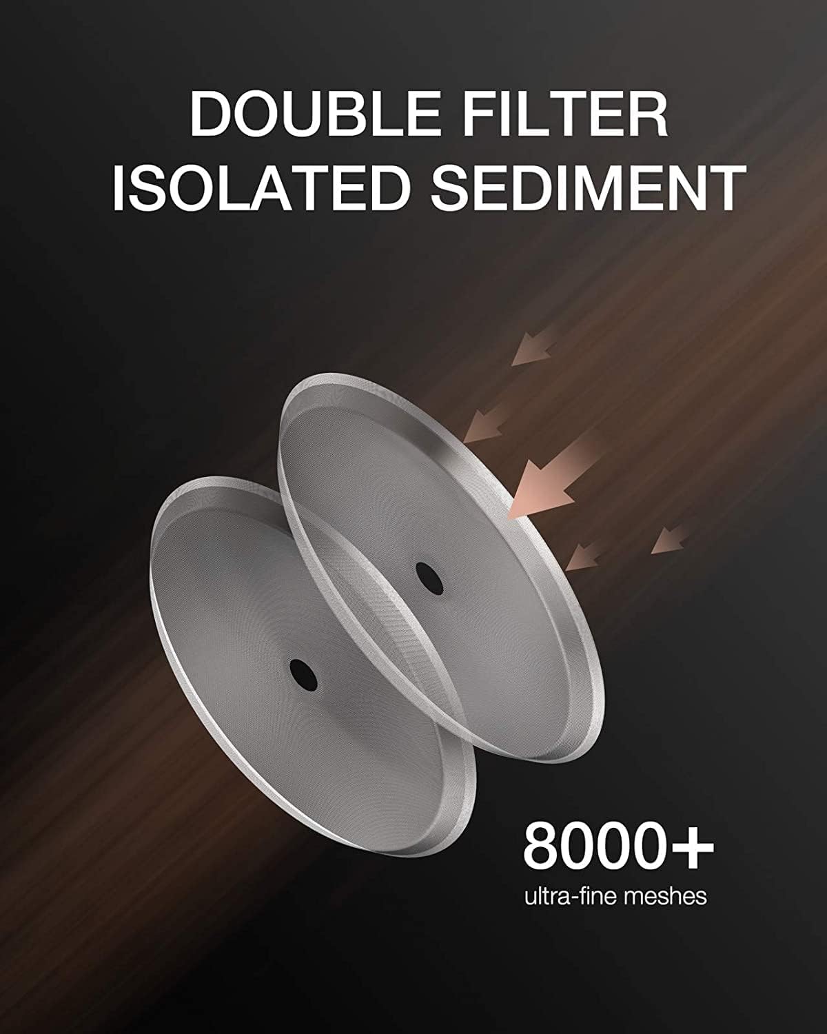 - 4-Level Filtration: Our French press features a 4-level filtration system with a metal mesh filter, spring disk, metal cross plate, and final mesh screen—delivering smooth, sediment-free coffee every time