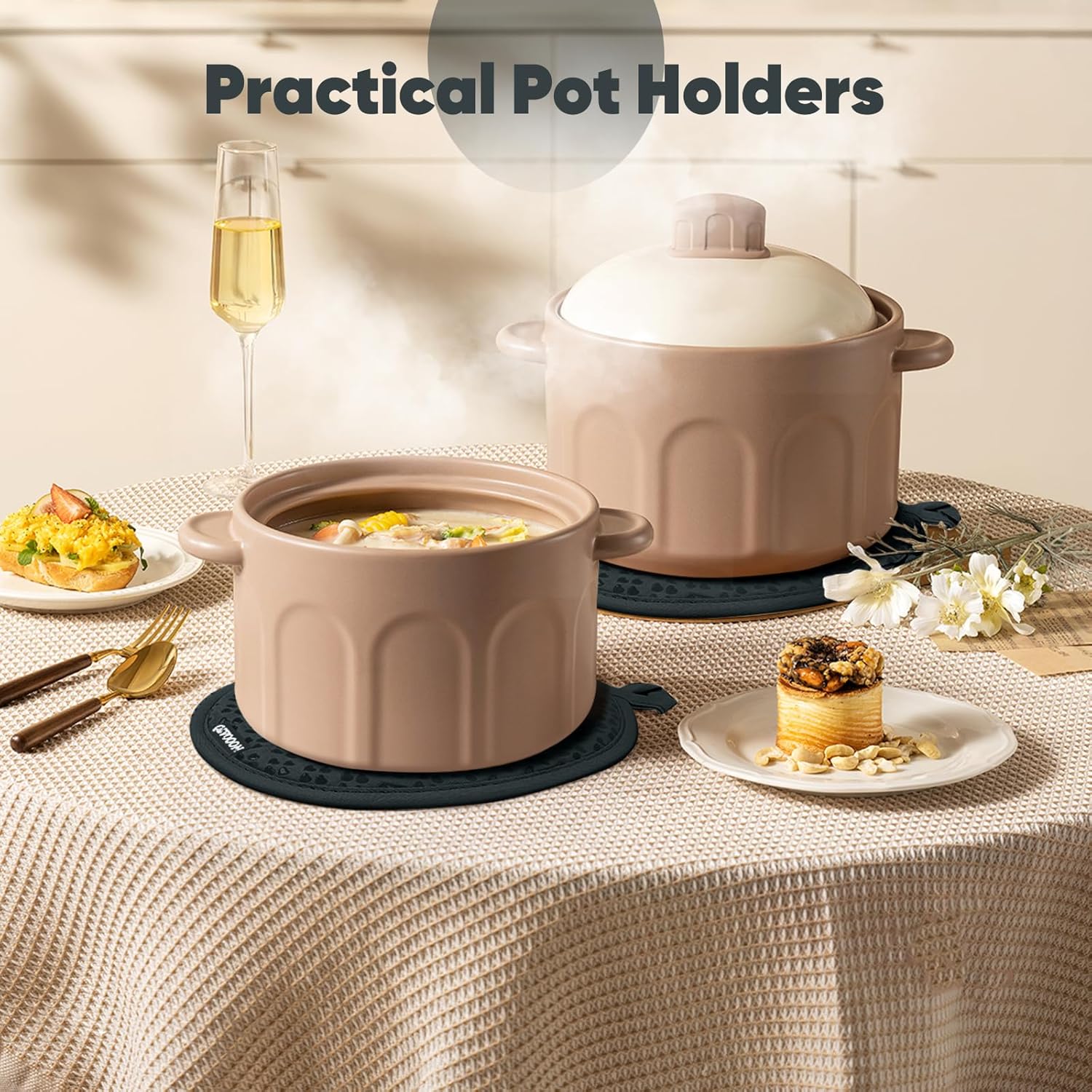- Kitchen Essentials: These sets of oven mitts and pot holders feature heart-shaped silicone prints that provide a strong grip and effectively prevent slippage. Bid farewell to awkward accidents and welcome effortless maneuvering in the kitchen. Whether you need to remove a hot casserole dish or adjust a sizzling pan,these silicone oven mitts pair will certainly come in handy