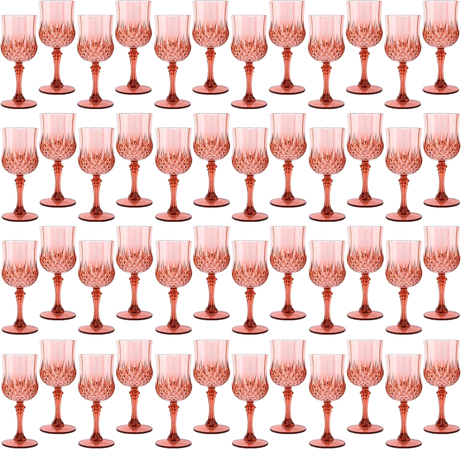 Plastic Wine Glasses,Plastic Goblets Vintage Style Cordial Drinking Glasses for Wedding Reception, Grand Event Party Supplies (48, Rose Gold)