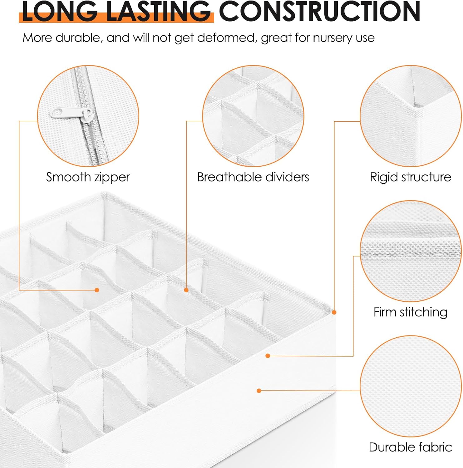 - ăQUALITY STRUCTUREăThese dresser drawer organizers feature robust non-woven fabric and expert stitching for extra durability. Enhanced with sturdy boards on the sides and bottom, these organizer bins stay rigid for years. Odorless and perfect for nursery baby clothes storage.