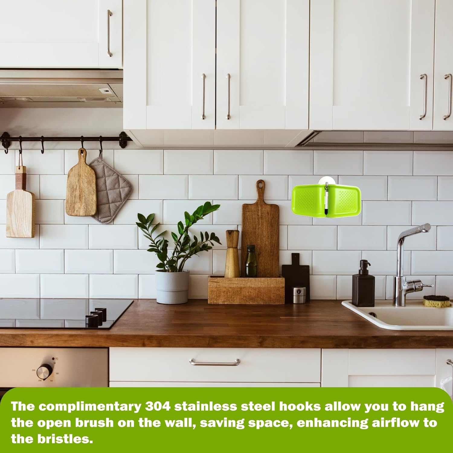 4pcs (2Brush and 2Wall Hook) Openable BladeBrush Knife and Cutlery Cleaner Brush, Silverware Scrubber, Bristle Scrub for Kitchen Washing, Non-Slip, U-Design,Green,Retractable (KCCB-O)