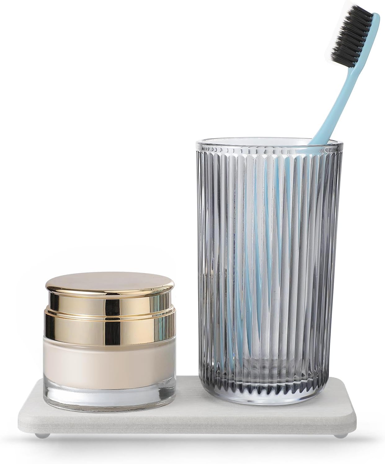 Water Absorbing Stone Tray for Sink | Quick Drying Diatomaceous Earth Coasters | Soap Dish Holder & Toothbrush Holder for Bathroom Counter | Hand Soap & Plant & Toiletries | Light Grey 1-Pack