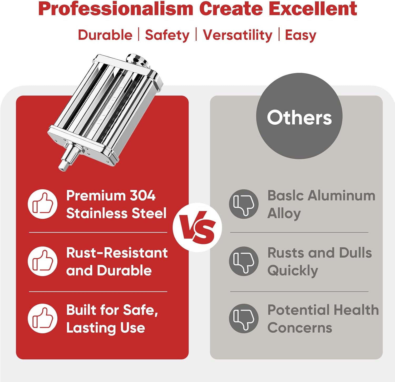 - Your safety is our top priority. As kitchen aid pasta attachment for kitchenaid stand mixer comes with a metal baffle that prevents messes during use. With its protection, you can cook with confidence and concentrate on making perfect pasta without worry.