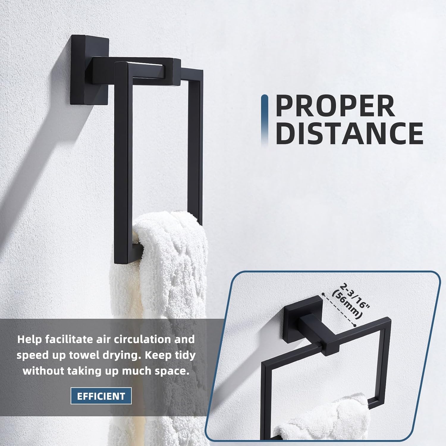 - KEEP CLEAN & DRY QUICKLY: hanging length is 6 5/16" to spread towel without wrinkling up, distance between the wall and holder is 2 3/16" for air circulation