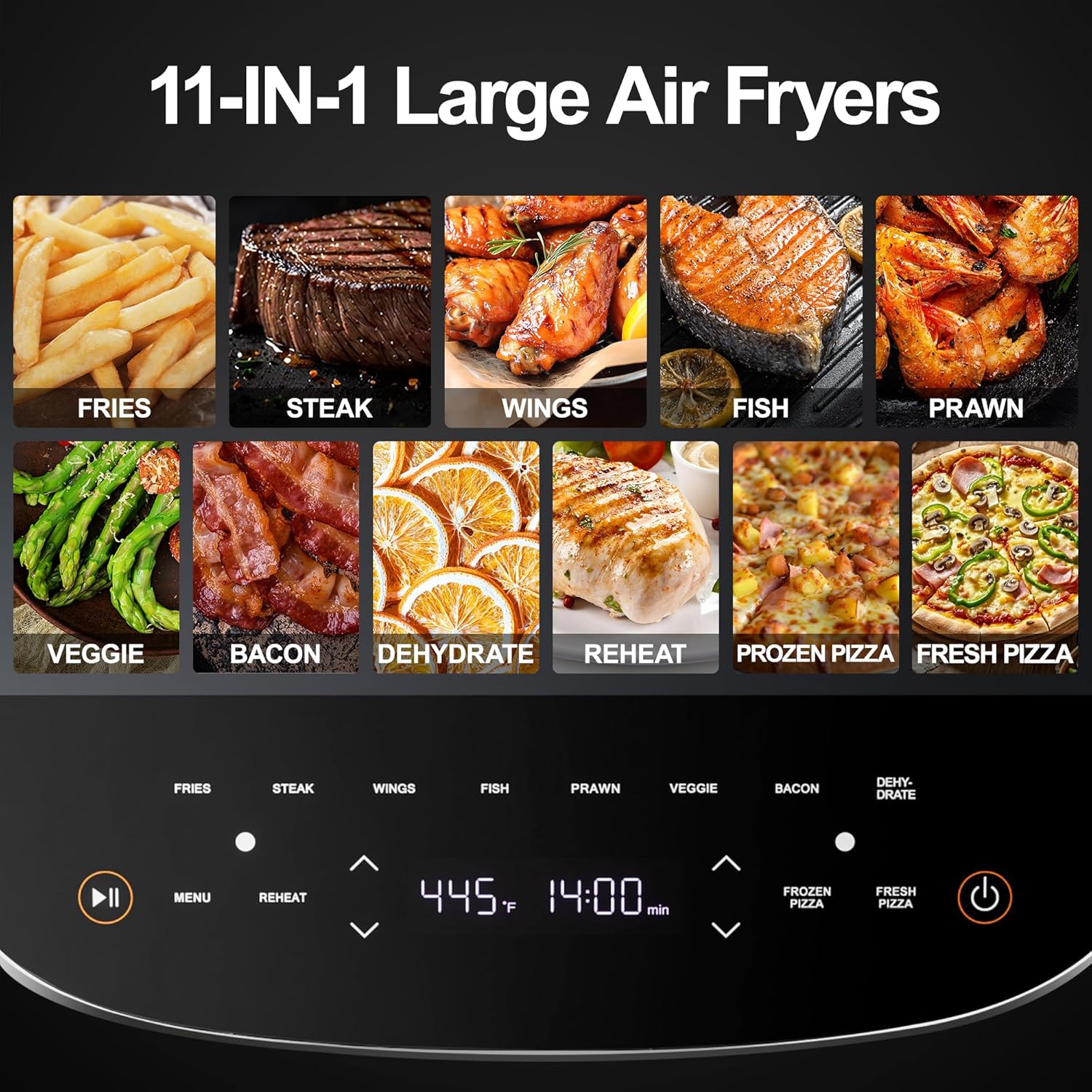 Large Air Fryer,11-IN-1 Airfryer,Super Fast Cooking Speed with Dual Heat Source, Non Toxic Air Fryers Stainless Steel, Max Crisp Technology with 450F, 6QT Up to 33 Chicken Wings Capacity