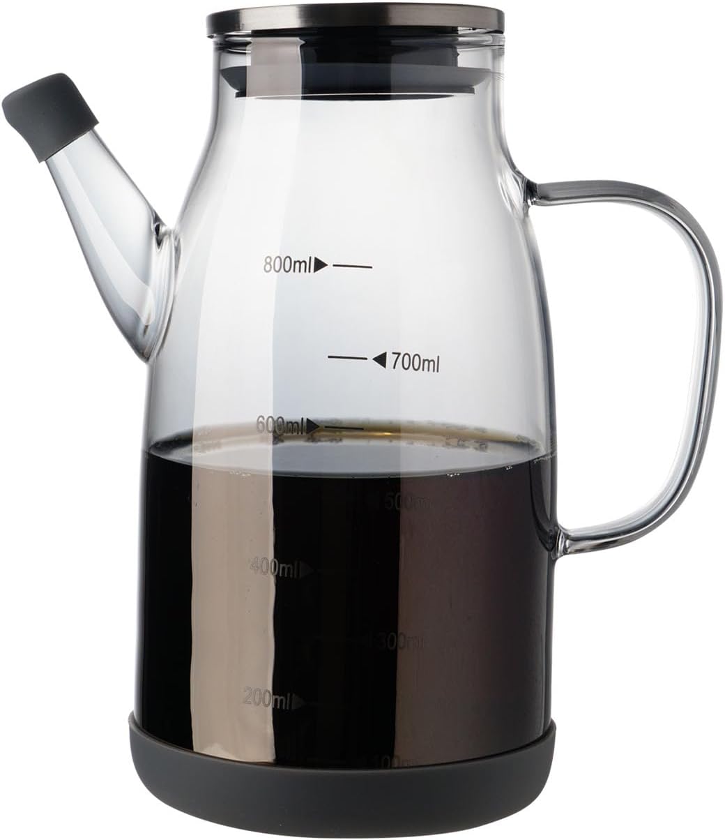 - 【Precisely display】Featured milliliters measurements mark on glass, easily monitor remaining oil and rightly controls oil use, which drastically reduces caloric intake and excess fat gain, make eating more heathier.