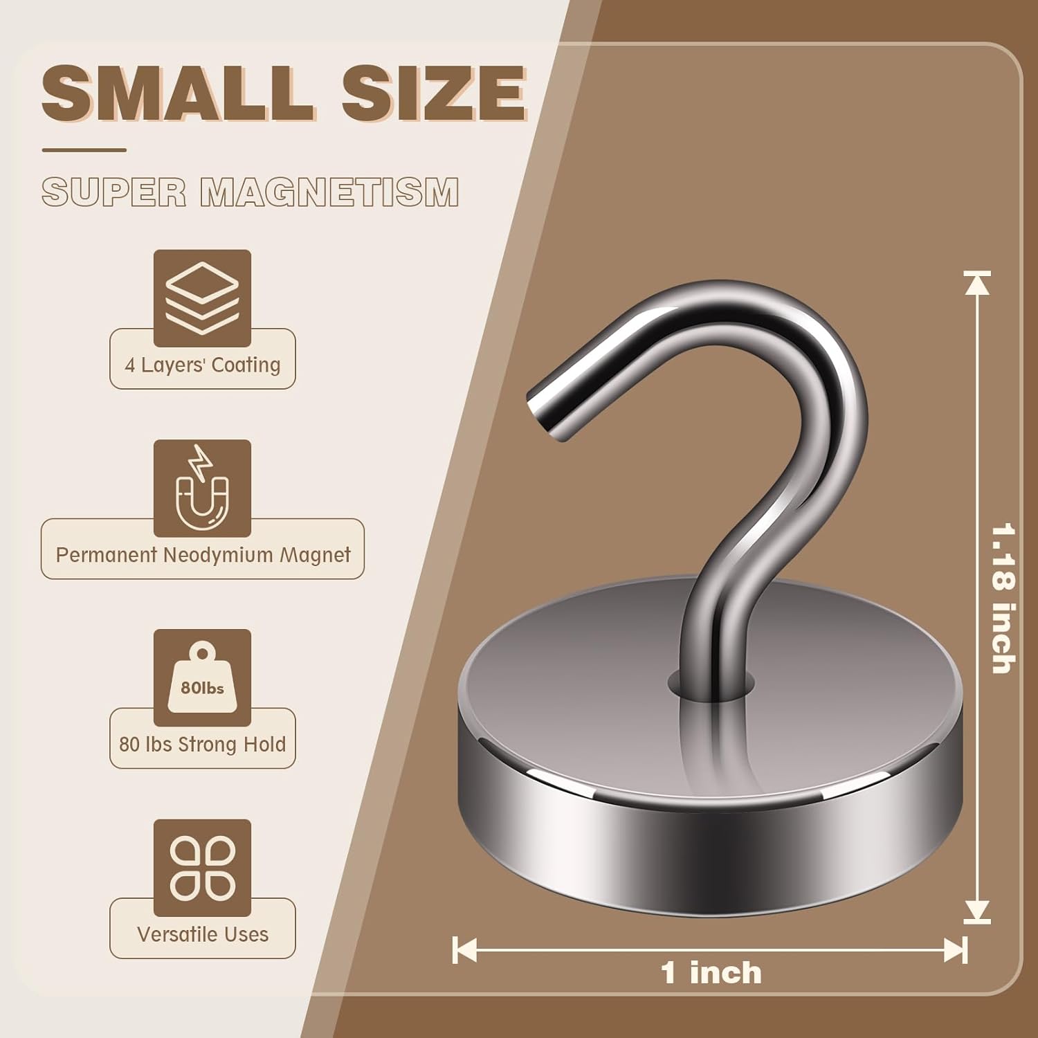 - ✔ VERSATILE USE- Neosmuk’s strong neodymium magnetic hooks were endowed with a strong capability for holding various items wherever there is iron or steel. This magnet hook is a perfect magnetic key holder. You can also hang your tools next to the toolbox with this magnetic hook. Our magnetic hooks are great for grill, pot, cup, utensils, and oven.