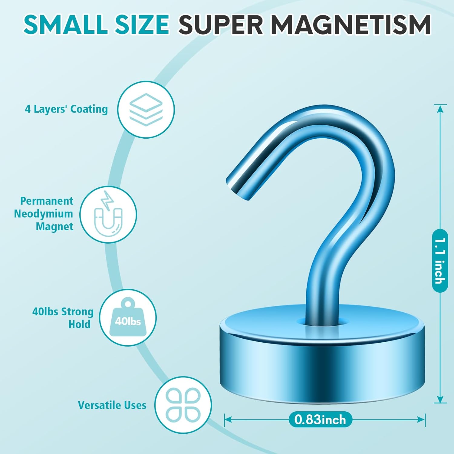 Neosmuk Magnetic Hooks, Cruise Ship Essentials, 40lb+ Heavy Duty Magnetic Hooks for Cruise Cabins, Refrigerator, Grill, Hanging, and Travel | Extra Strong Must-Haves Magnet Hook,RoyalBlue,Pack of 10