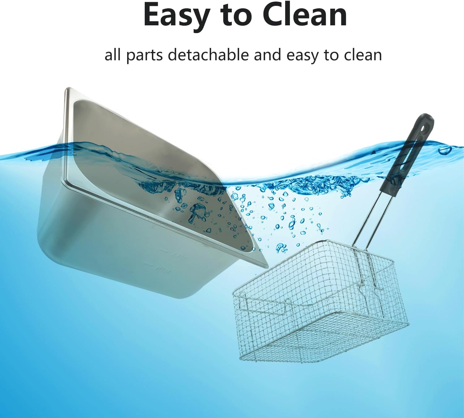 - Robust and Easy To Clean - This commercial deep fryer is made from heavy duty thickened 0.6mm stainless steel for a robust construction. The thickened tank is durable and the deep fryer has removable inserts for quick cleaning. Everything is dishwasher safe except for the heating element