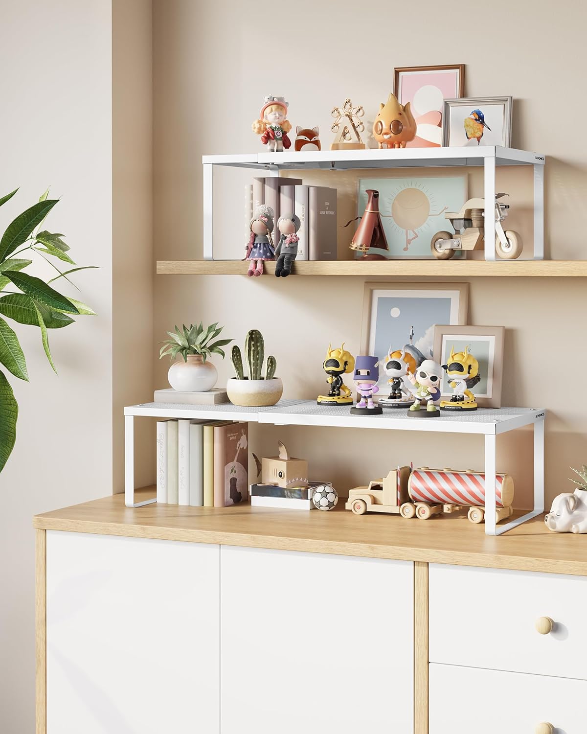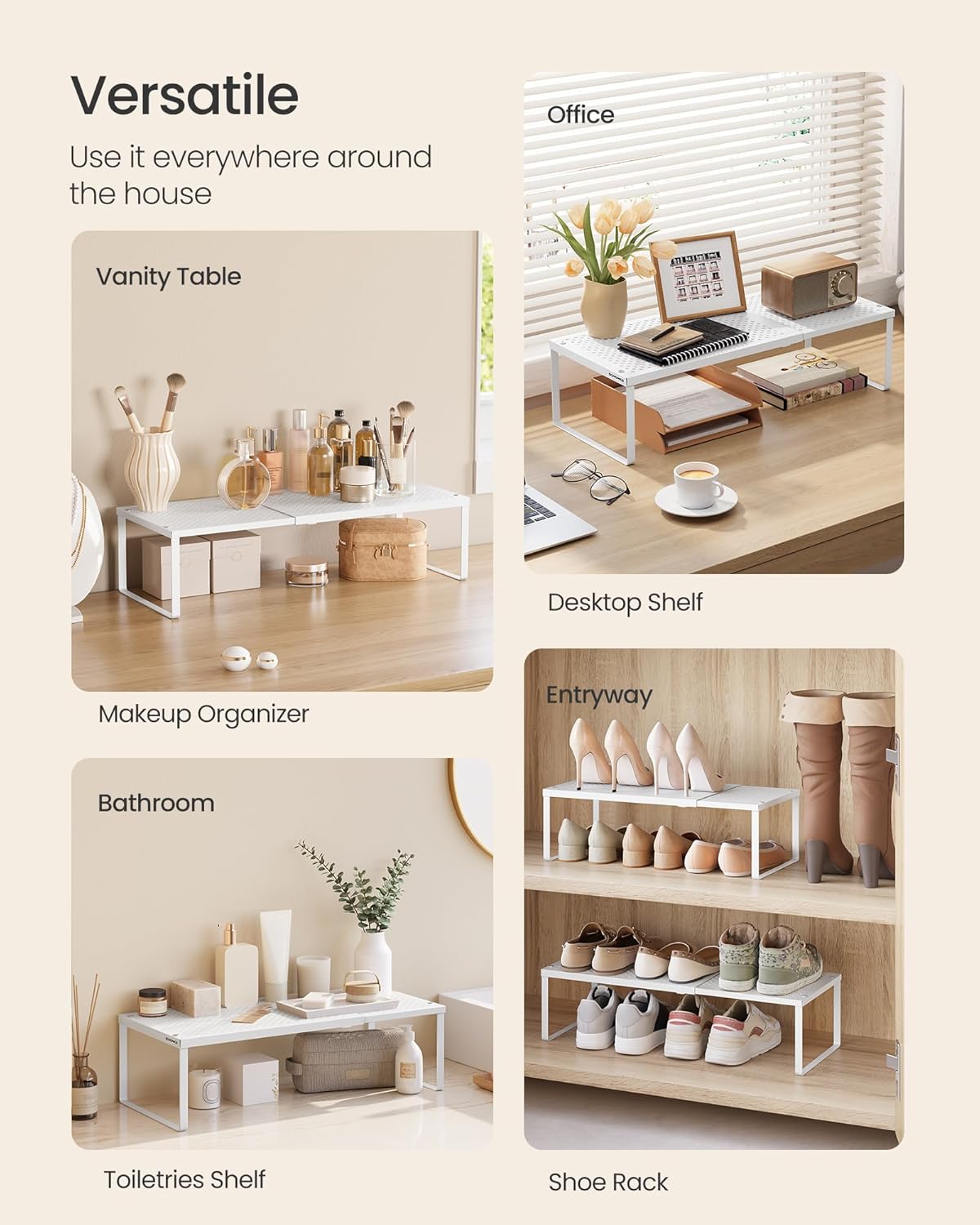 - 【VERSATILE】Place this cupboard shelf in kitchen cabinets or on countertops to store kitchen utensils, in the study to house office utensils and decorations, or in the entryway to keep your shoes off the floor