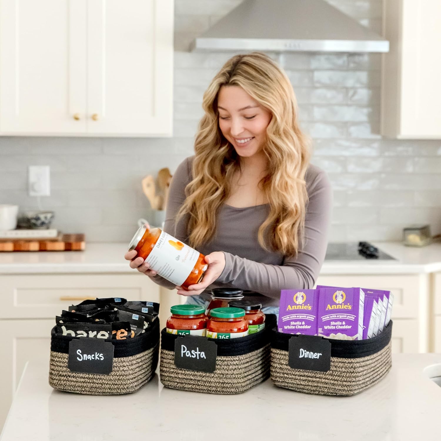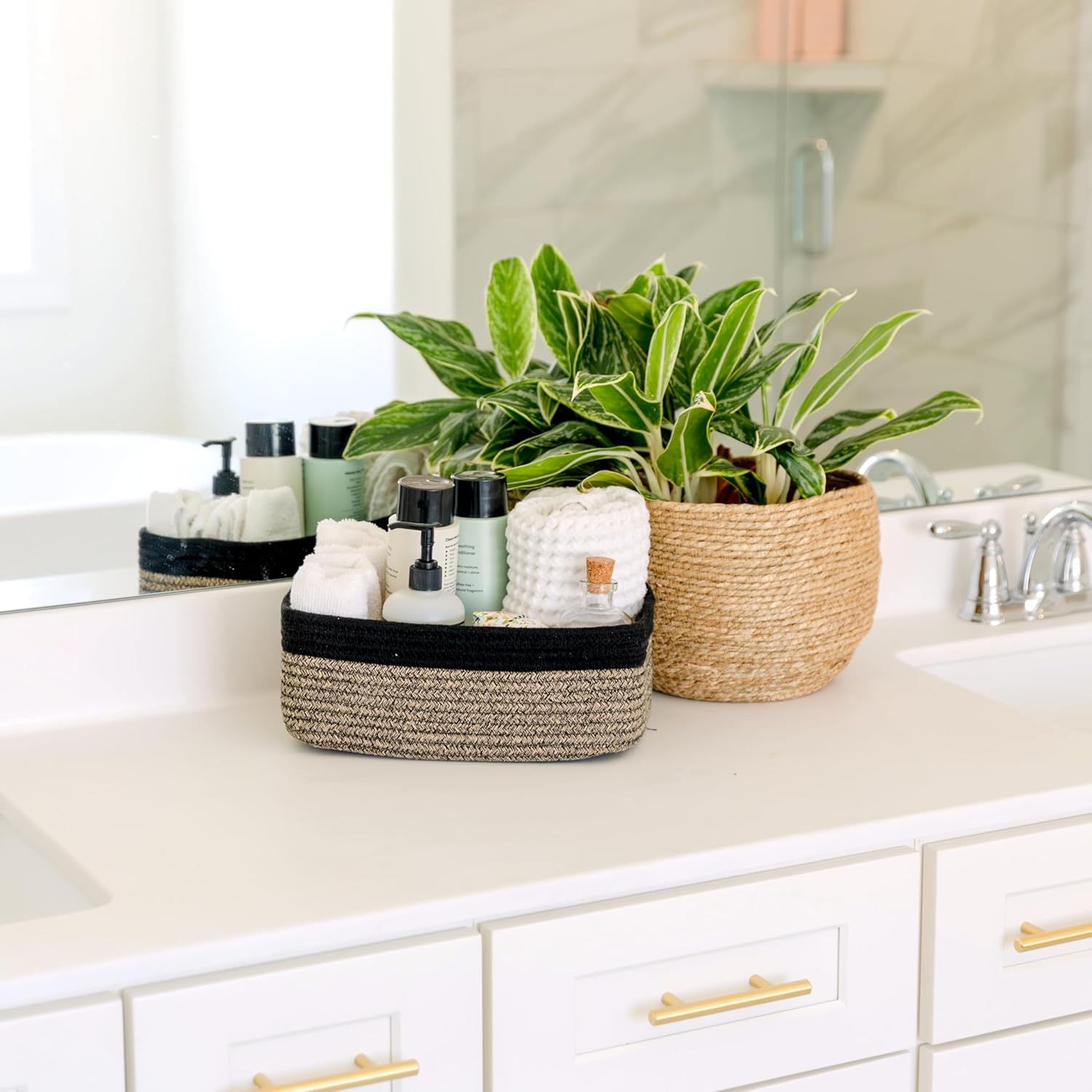 - Safe, Natural Cotton Organizer Bins: Crafted from the highest quality material in the market, our storage bins are oh-so-sturdy (and cute) and ready to take on little humans. They’re 100% safe, so you can rest easy if teething toddlers take a nibble. Reinforced Hidden Handles: Now you see ‘em, now you don’t! With completely hidden handles that blend seamlessly into the rope basket, you’ll be the Houdini of home organizing. They’re even double-stitched and reinforced for extra heavy loads!