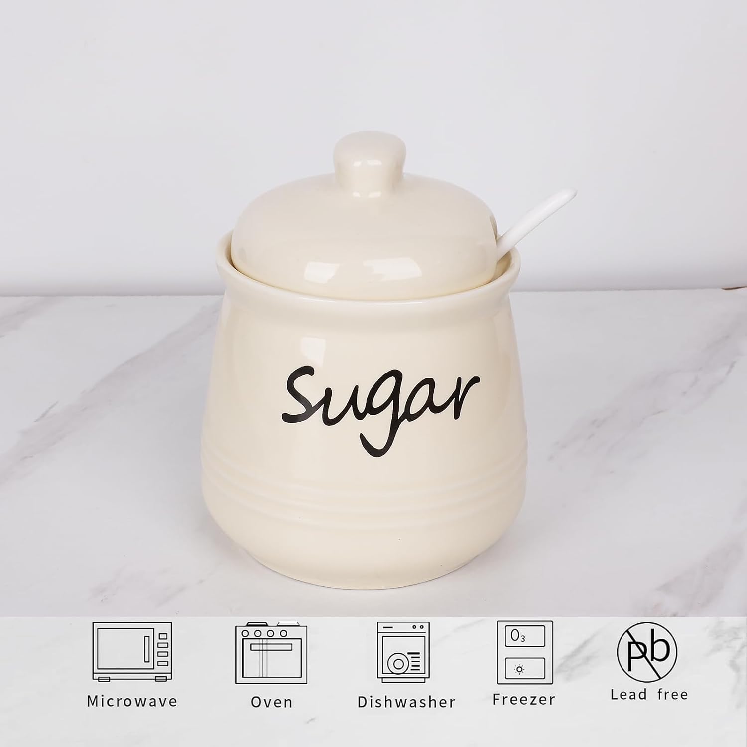 - DESIGN CONCEPT: This sugar bowl is equipped with a lid and a small spoon. The lid can keep your ingredients away from dust. There is a perfect notch on the lid for placing the spoon, so you donβt have to worry about placing the spoon randomly