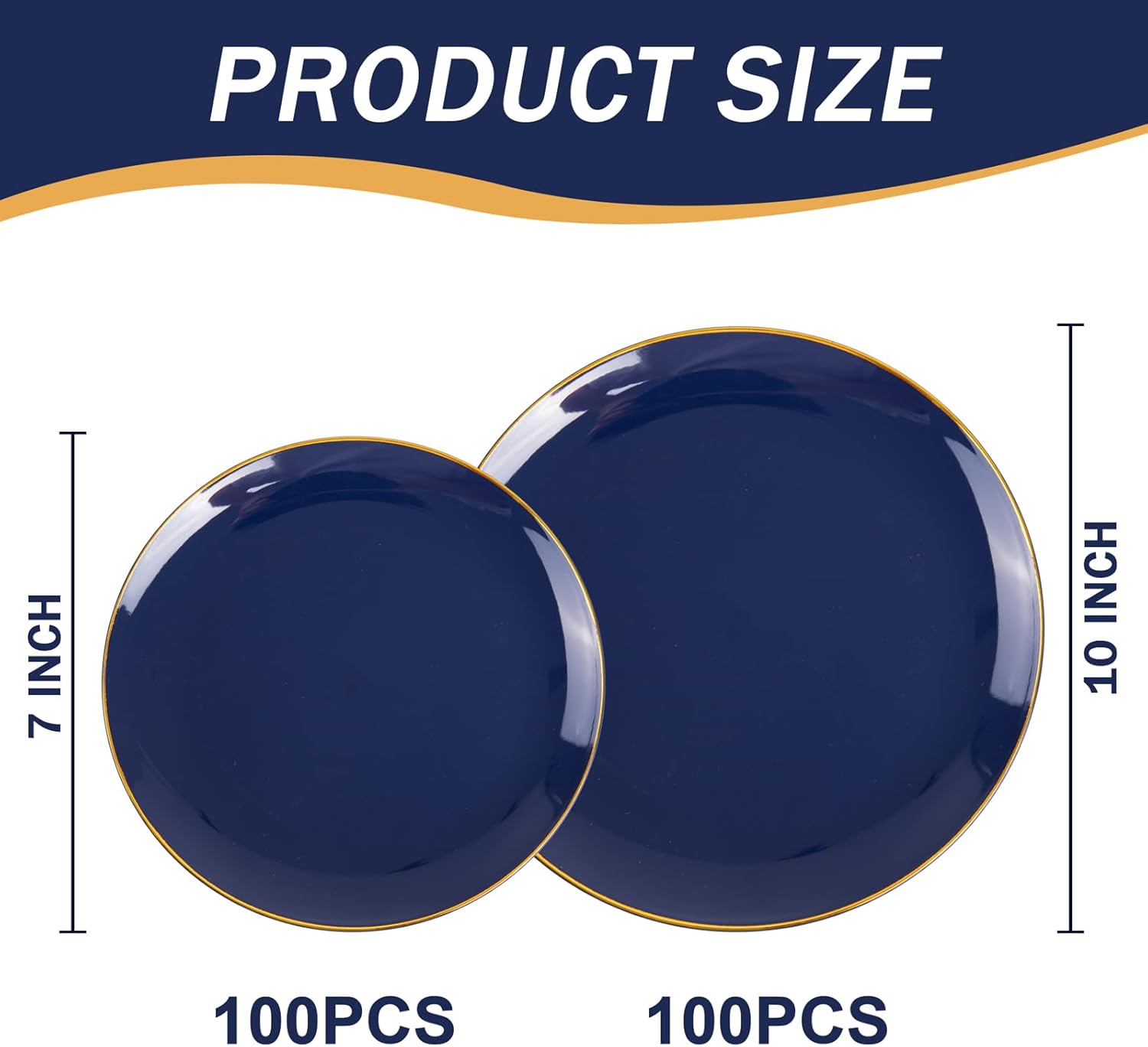 - VALUE SET: Heavy duty blue plastic plate set includes 100 pieces 10-inch dinner plates and 100 pieces 7-inch dessert plates, ensuring you can entertain all your guests. Navy blue disposable plates for parties are a must-have for easy entertaining.