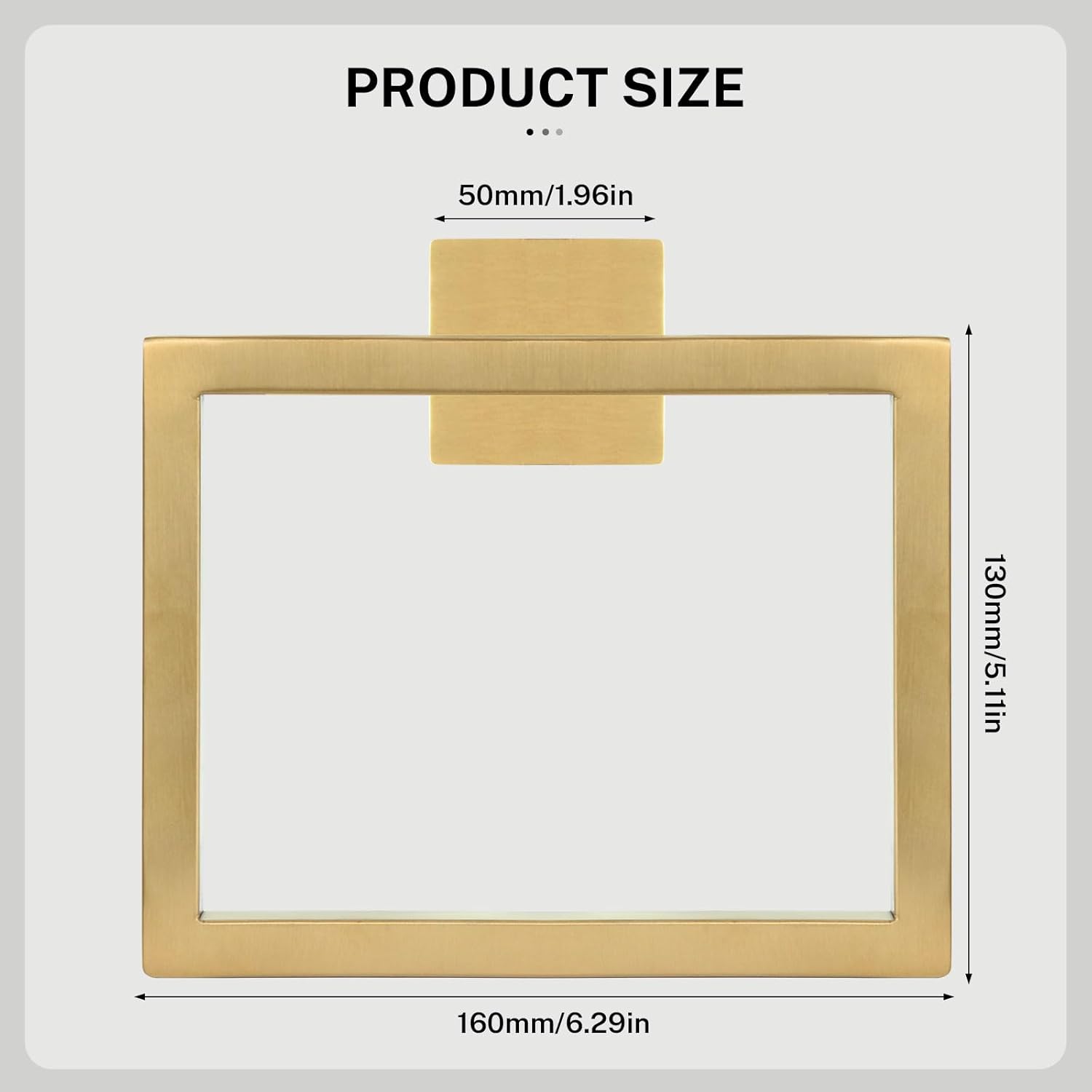 2-Piece Brushed Gold Square Towel Ring,Hand Towel Holder,SUS304 Stainless Steel Modern Towel Holder Wall-Mounted Bathroom Towel Ring