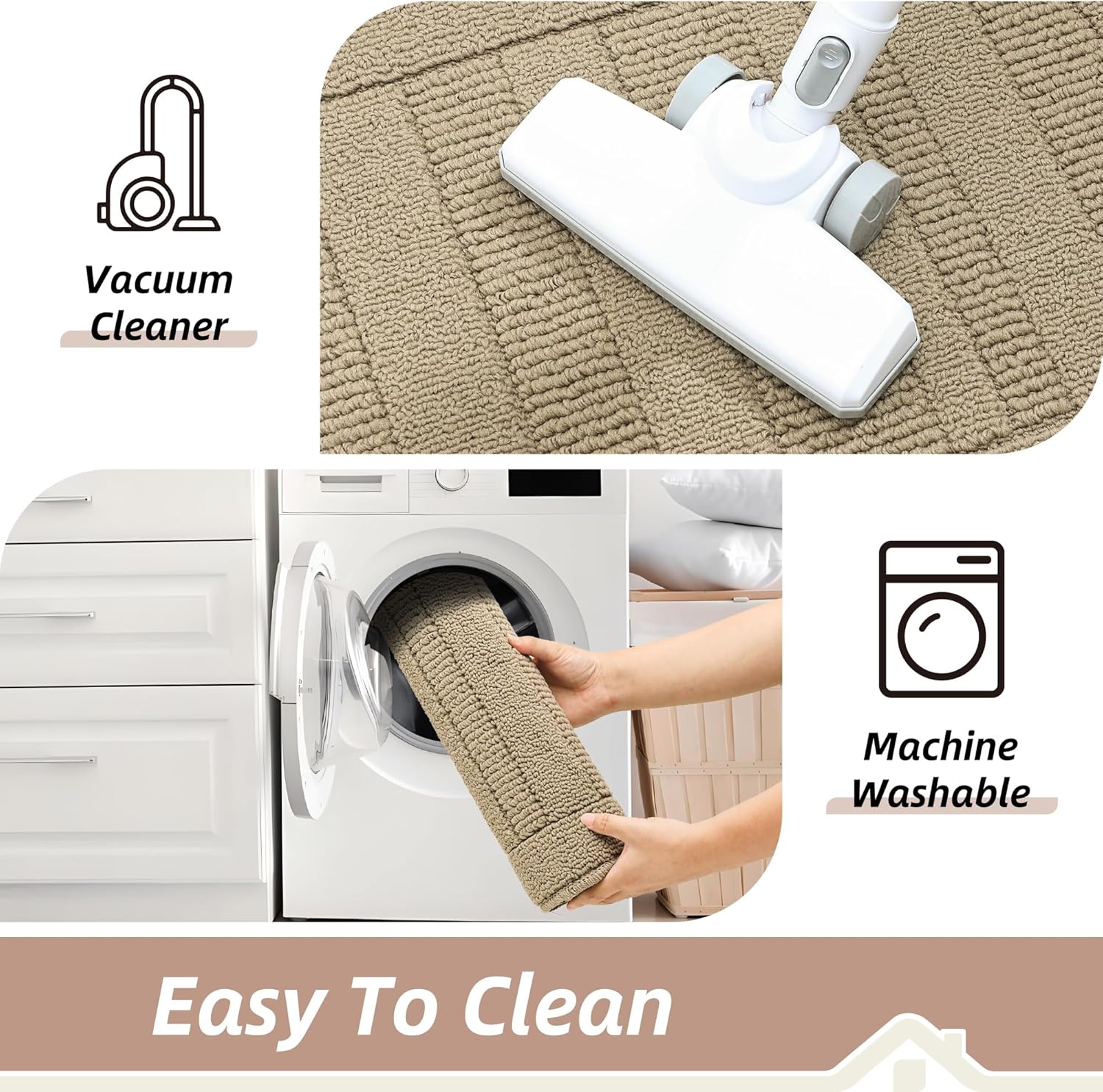 - Easy to Clean: Our kitchen rugs and mats non skid washable are easily cleaned.You can use the vacuum.Also,they are machine washable.Don't worry about fiber falling because of edge locking technology.Our kitchen floor mats can be durable and reusable for long time.Kitchen mat still maintains shape and colors.