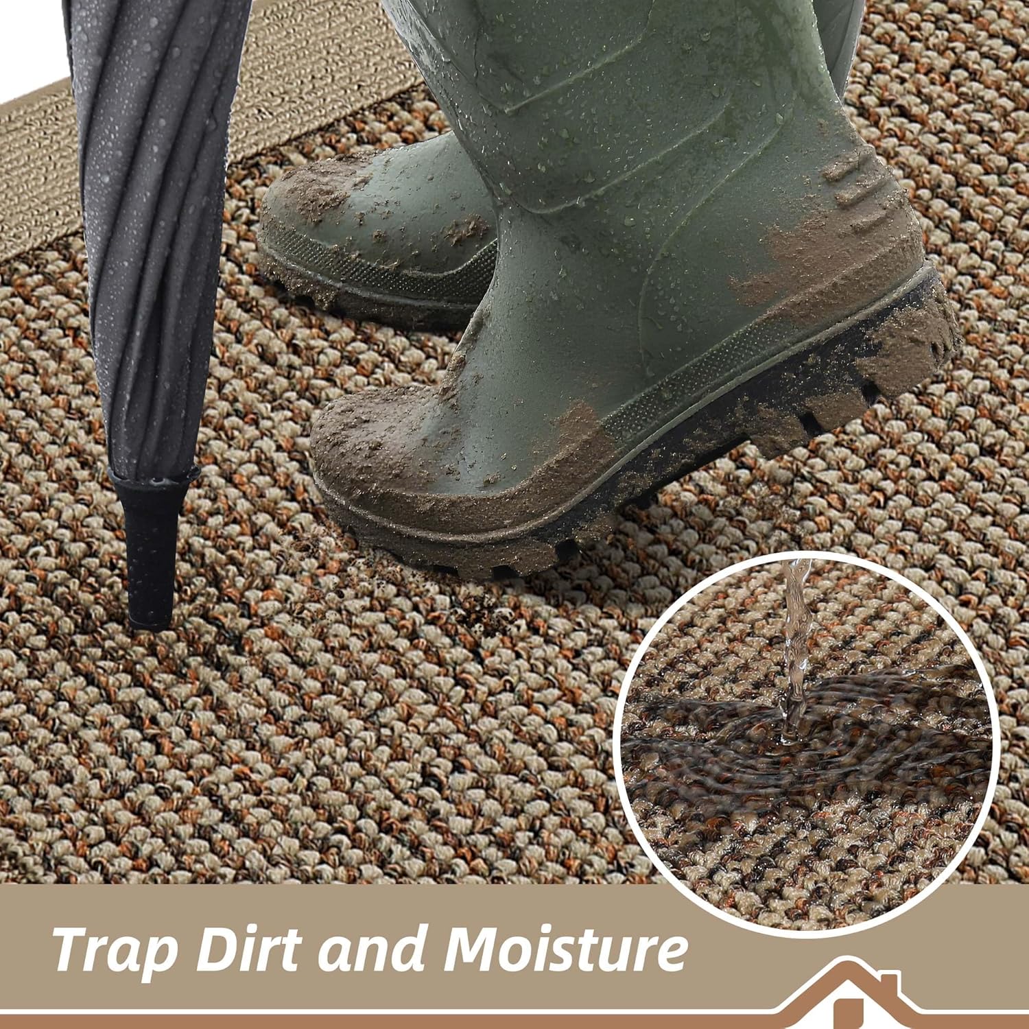 BEQHAUSE Indoor Door Mat 20" x 32", Dirt Trapper Door Mats Non-Slip Entryway Rugs Washable, Resist Dirt Absorbent Welcome Mat, Low Profile Floor Mats for Front Back Door and Entryway, Taupe