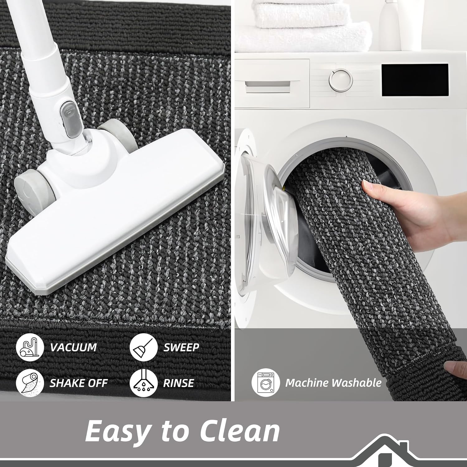 - Easy to Clean: The stain and fade resistant kitchen runner rug can be easily cleaned by a broom or vacuum cleaner. For a deeper clean, machine wash separately in cold water, using mild detergent. Tumble dry, low heat. Do not use bleach or fabric softener