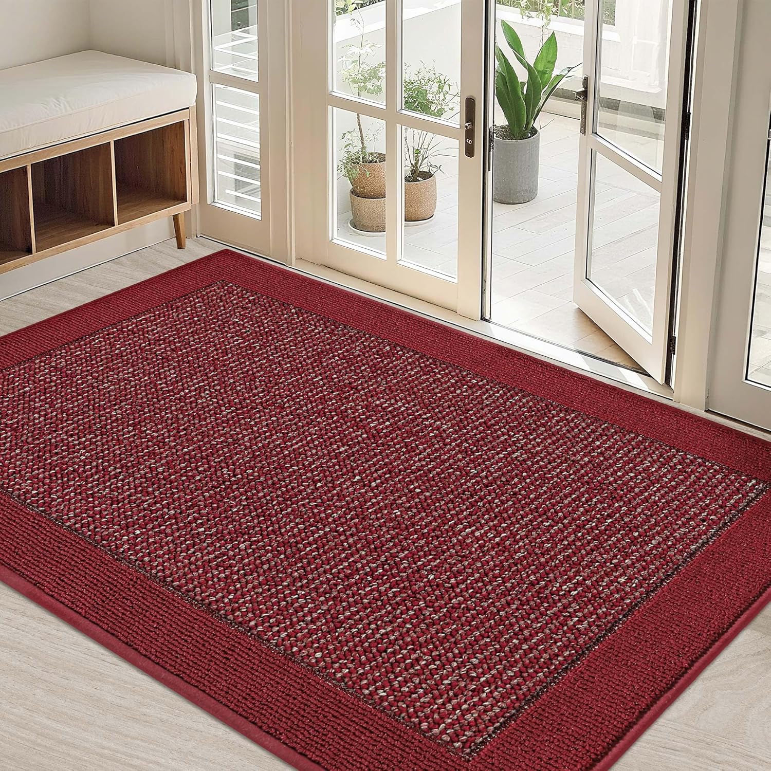 BEQHAUSE Indoor Door Mat 32" x 48", Dirt Trapper Door Mats Non-Slip Entryway Rugs Washable, Resist Dirt Absorbent Welcome Mat, Low Profile Floor Mats for Front Back Door and Entryway, Red