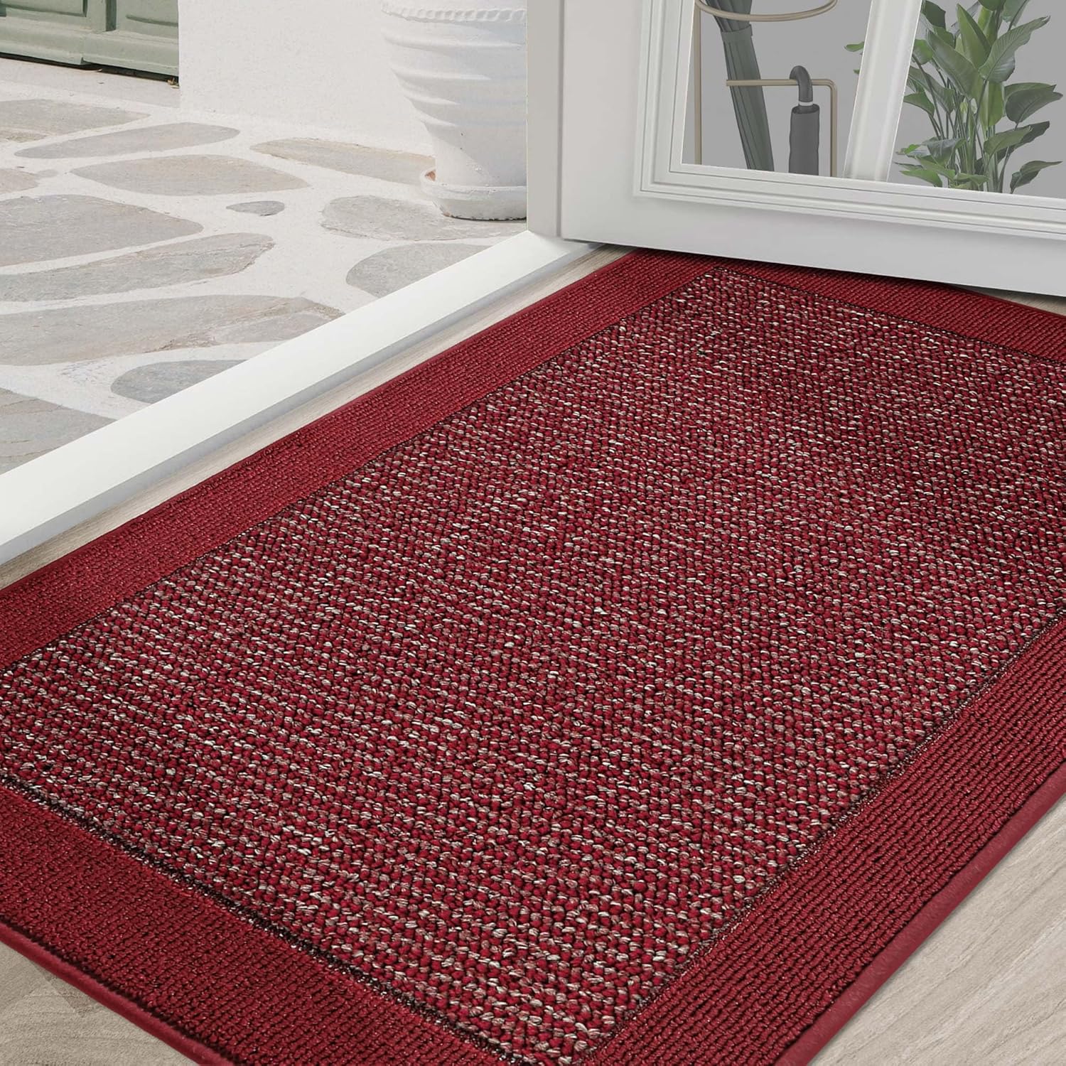 BEQHAUSE Indoor Door Mat 36" x 60", Dirt Trapper Door Mats Non-Slip Entryway Rugs Washable, Resist Dirt Absorbent Welcome Mat, Low Profile Floor Mats for Front Back Door and Entryway, Red