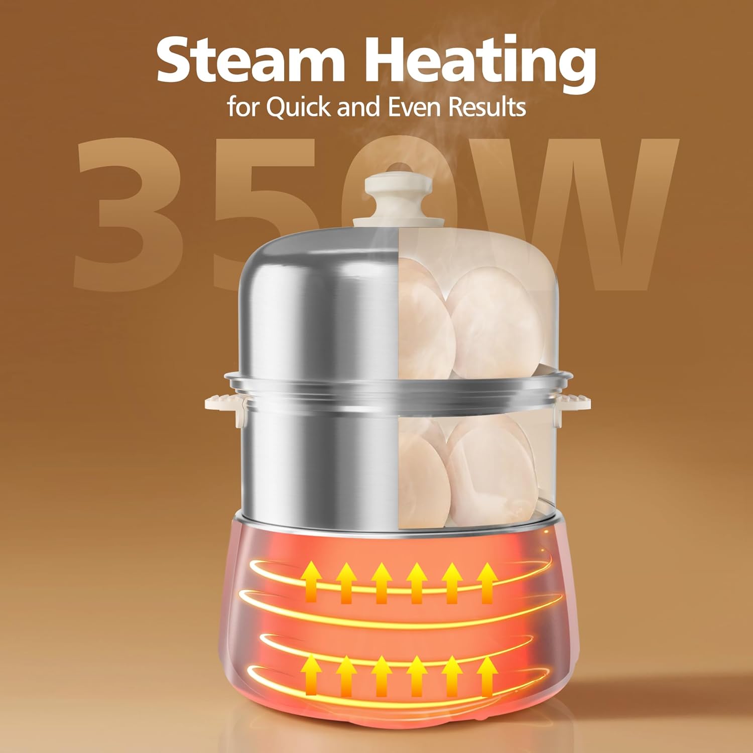 - 【Efficient Heating for Consistent Results】- Powered by 350 watts, this egg cooker delivers quick and even heating for perfectly cooked food; From eggs to baby food or reheating leftovers, it handles every task with precision;