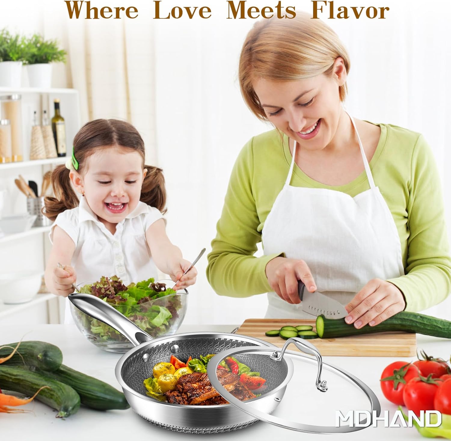 MDHAND 10 Inch Nonstick Frying Pan with Tempered Glass Lid, Premium Stainless Steel Skillet with Stay-Cool Handle, Dishwasher-Friendly, Oven-Safe, Induction Ready, Compatible with All Cooktops