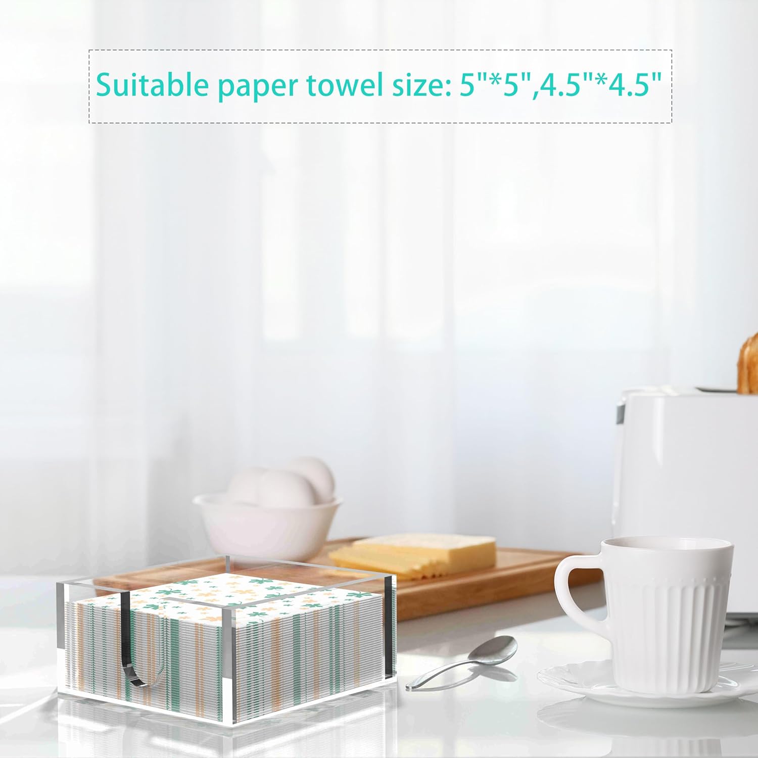 Rubtlamp 1Pcs Acrylic Napkin Holder Bathroom - 0.27Inch Thickness Acrylic Guest Towel Holder - Hand Towel Tray for Kitchen, Parties, Weddings, Party, Hotel, Restaurant(Clear, 5.5”X5.5”X2.5”)