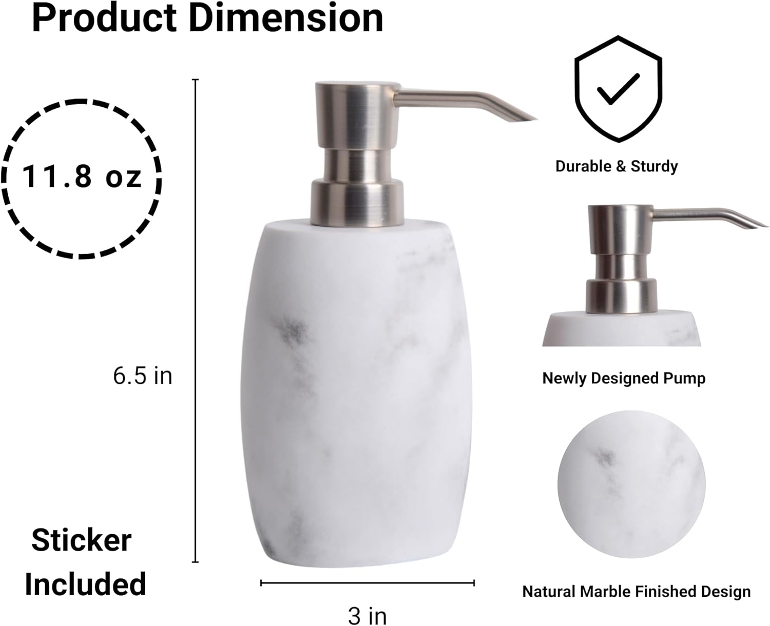 Resin Hand Soap Dispenser, Refillable Soap Dispenser with White Marble Look and Metallic Pump, Waterproof Bottle Labels for Bathroom Kitchen Dish Hand Wash Shower Lotion Shampoo (12 Oz)