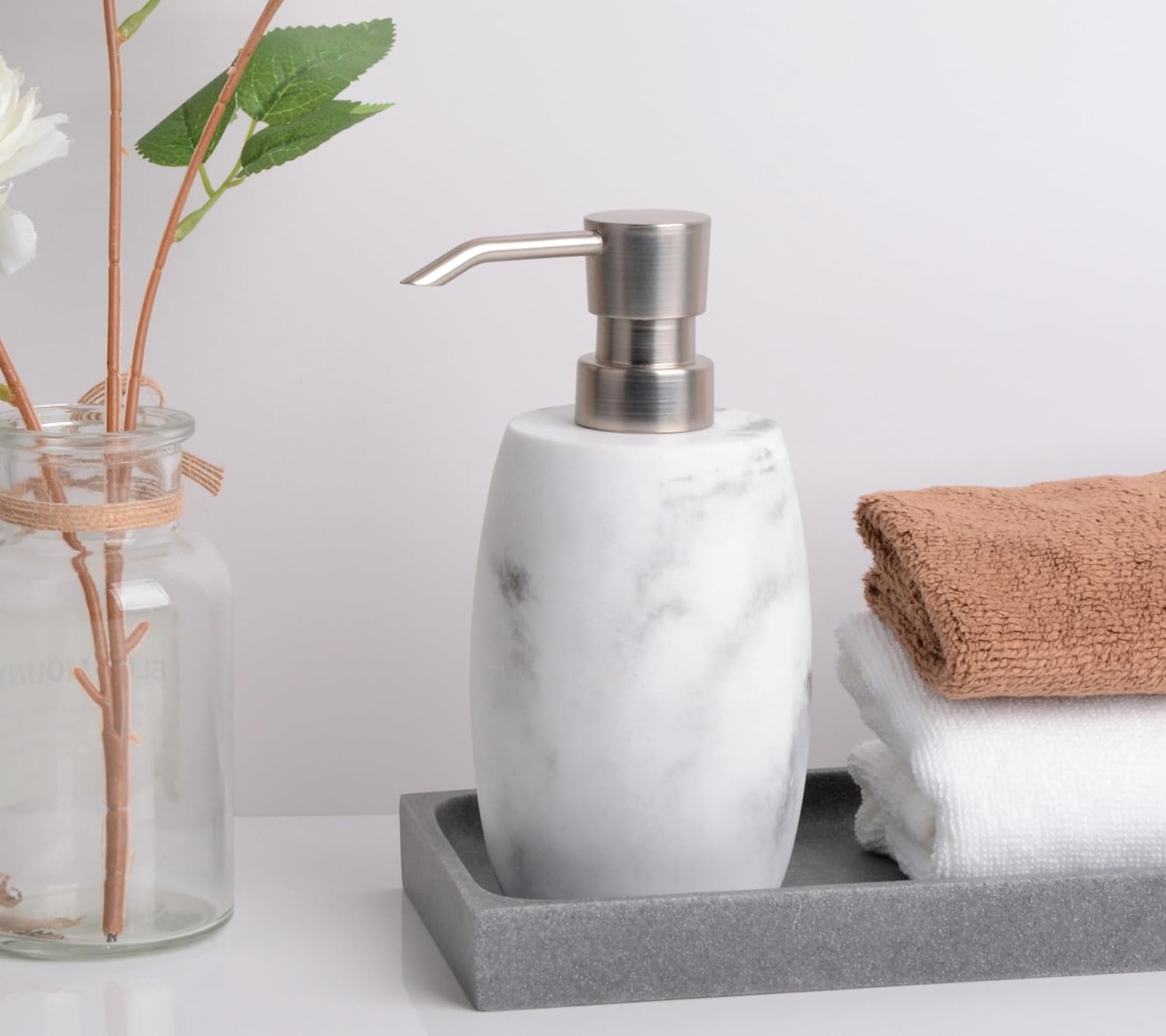 - 【MARBLE STYLE & GIFT IDEA】 Our dish soap dispenser exudes understated sophistication with its clean lines and elegant marble pattern. Designed to complement modern spaces, it enhances the ambiance of bathrooms, kitchens, or offices. A thoughtful and stylish gift for family and friends.