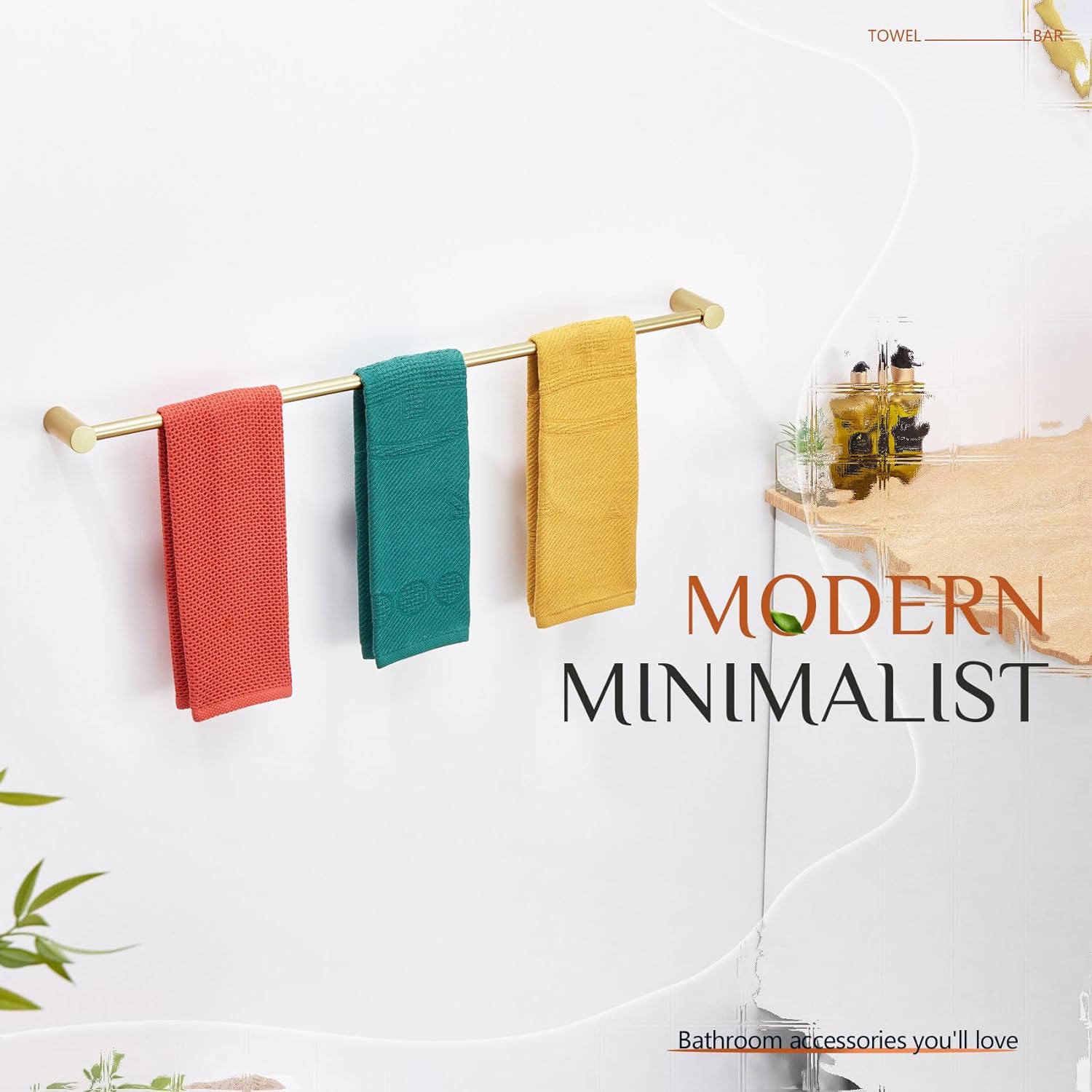- ◄ BRUSHED GOLD ► The bathroom towel holder is brushed gold finish which is fingerprint-proof and water-proof. And the surface covering is resisting daily scratches, corrosion, and tarnishing