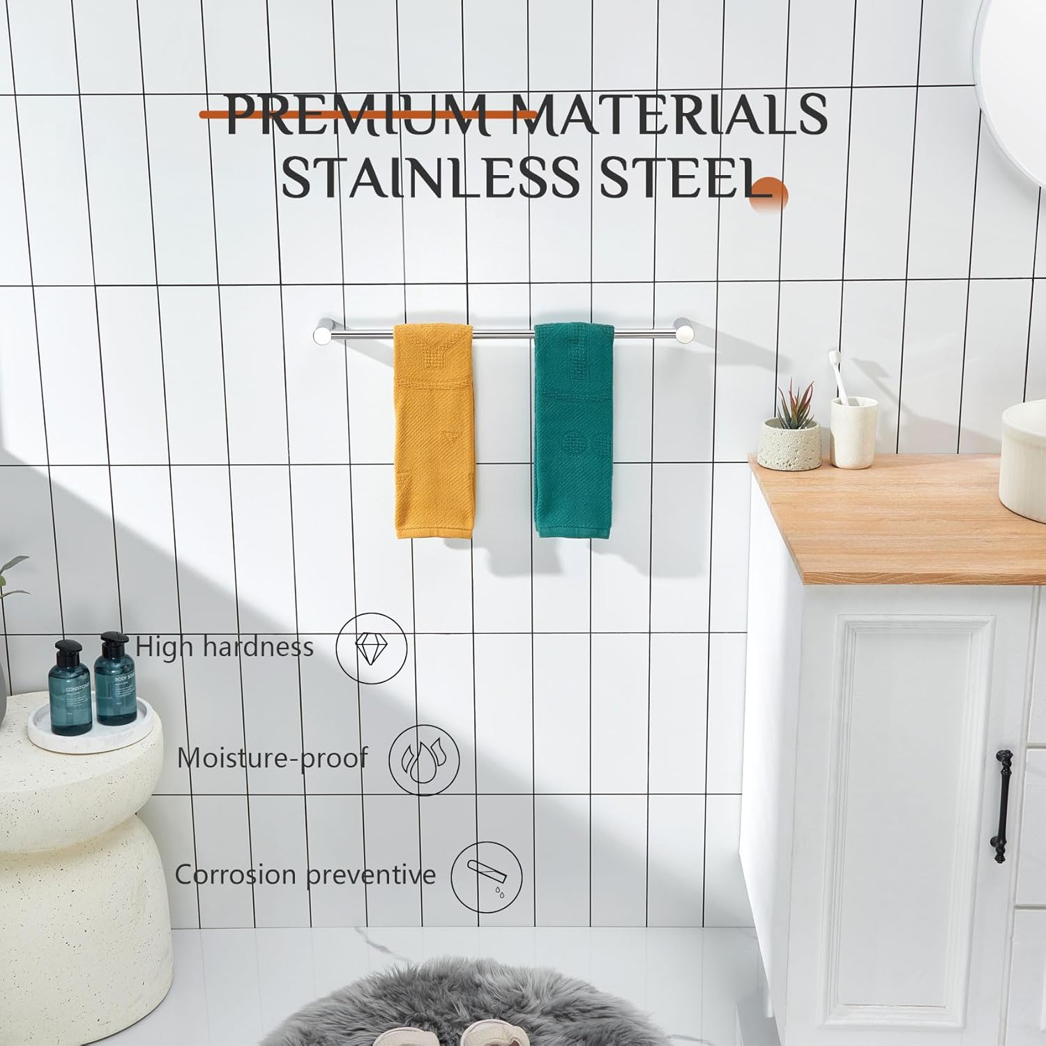 - ◄ POLISHED CHROME ► The bathroom towel holder is polishing as mirro-like finish which is bright and smooth. And the surface covering is resisting daily scratches, corrosion, and tarnishing