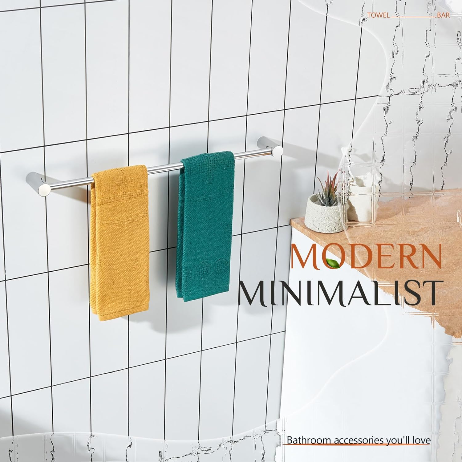 KOKOSIRI Towel Bars for Bathroom Wall Mounted 20'' Towel Rack Polished Chrome Single Rod for Lavatory Bathroom Hardware Stainless Steel, B4007CH-L20