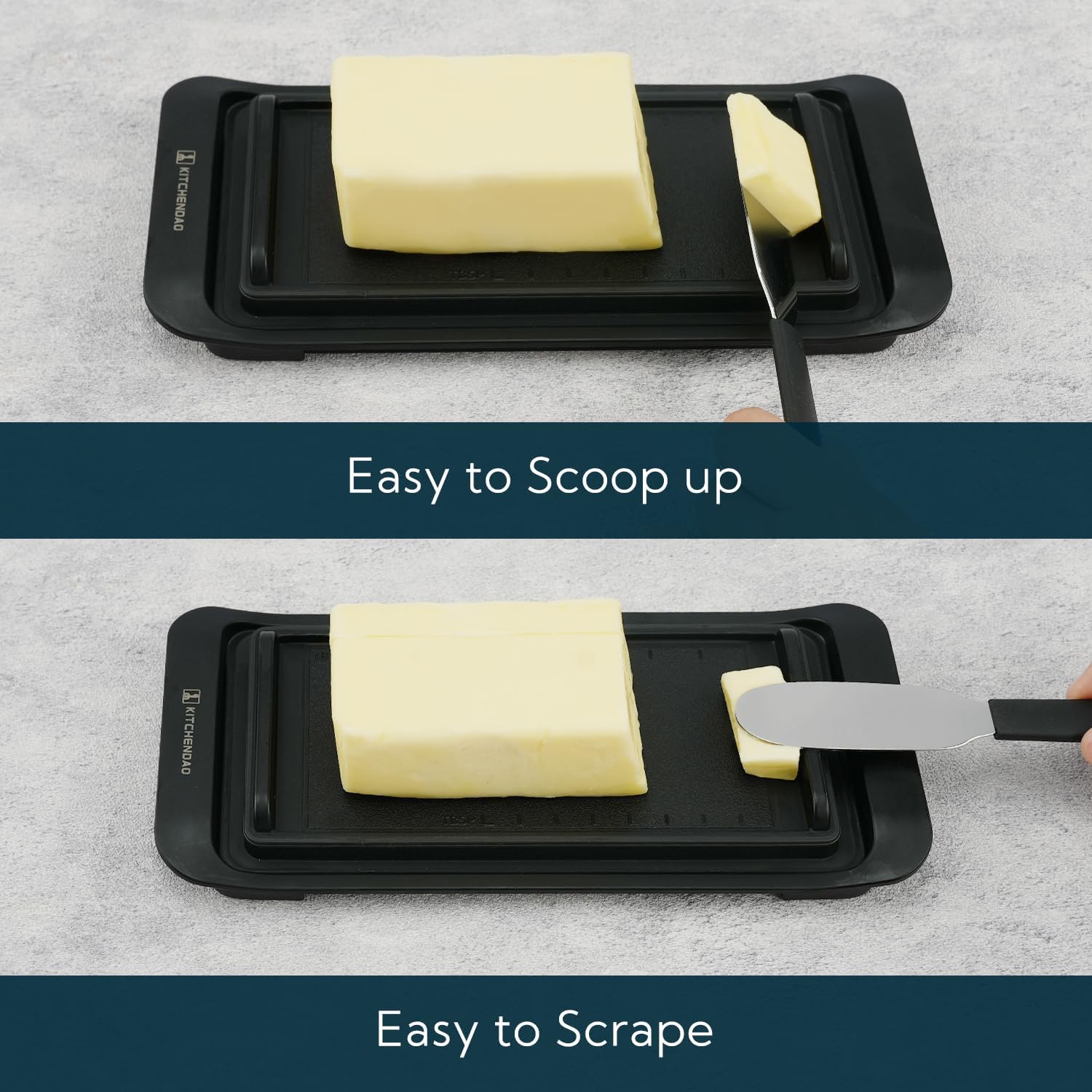 - Easy to Scoop up & Easy to Scrape:Have side stoppers to wipe off the excess butter and rest the knife. The stoppers at both ends of the clear butter holder help you easily scoop up butter. Slide the knife up the stopper and use the top of the stopper as a scraper to remove the remaining butter and clean your knife