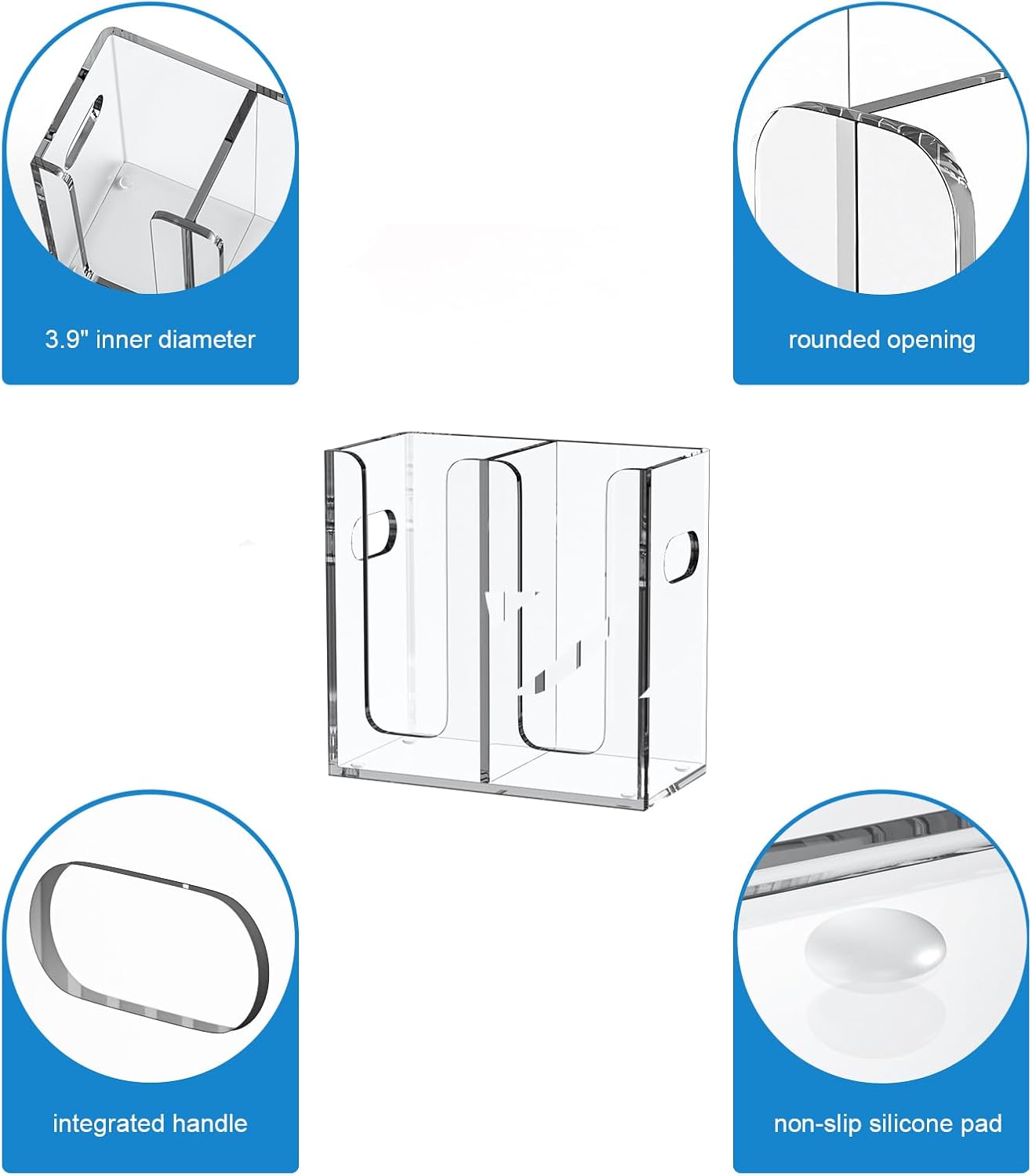 WINFFOR Disposable Cup Organizer Dispenser - 2 Compartments Clear Acrylic Cup and Lid Holder with Handles Plastic Cup Dispenser Countertop Paper Cup Holder for Coffee Bar House Party Essentials