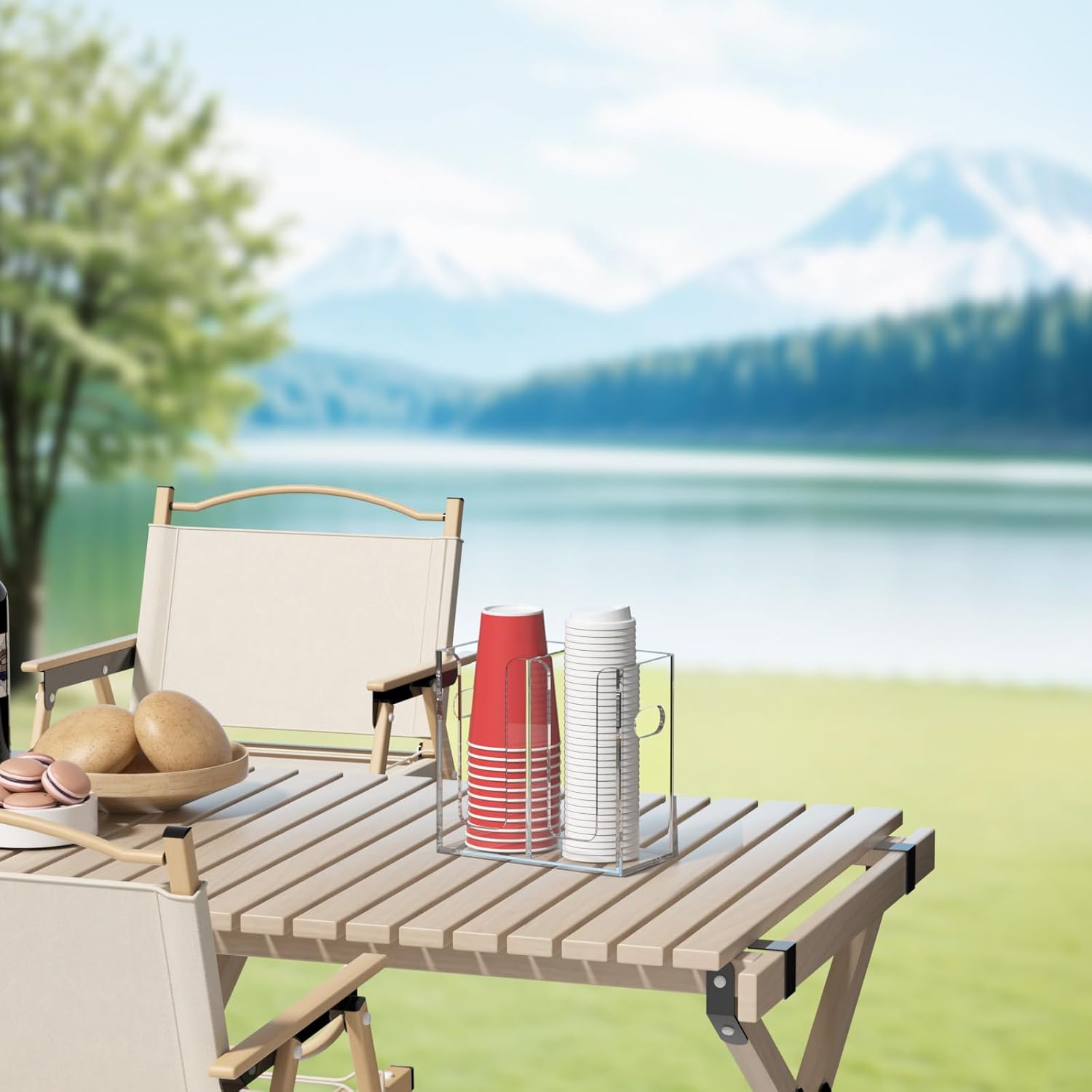 - INTEGRATED HANDLES: with a more user friendly design of 2 cutouts on two sides to be used as handles to carry around when you need to move this disposable paper cup holder from kitchen countertop in a house party or BBQ in your garden yard, it's great for in-home use or picnics