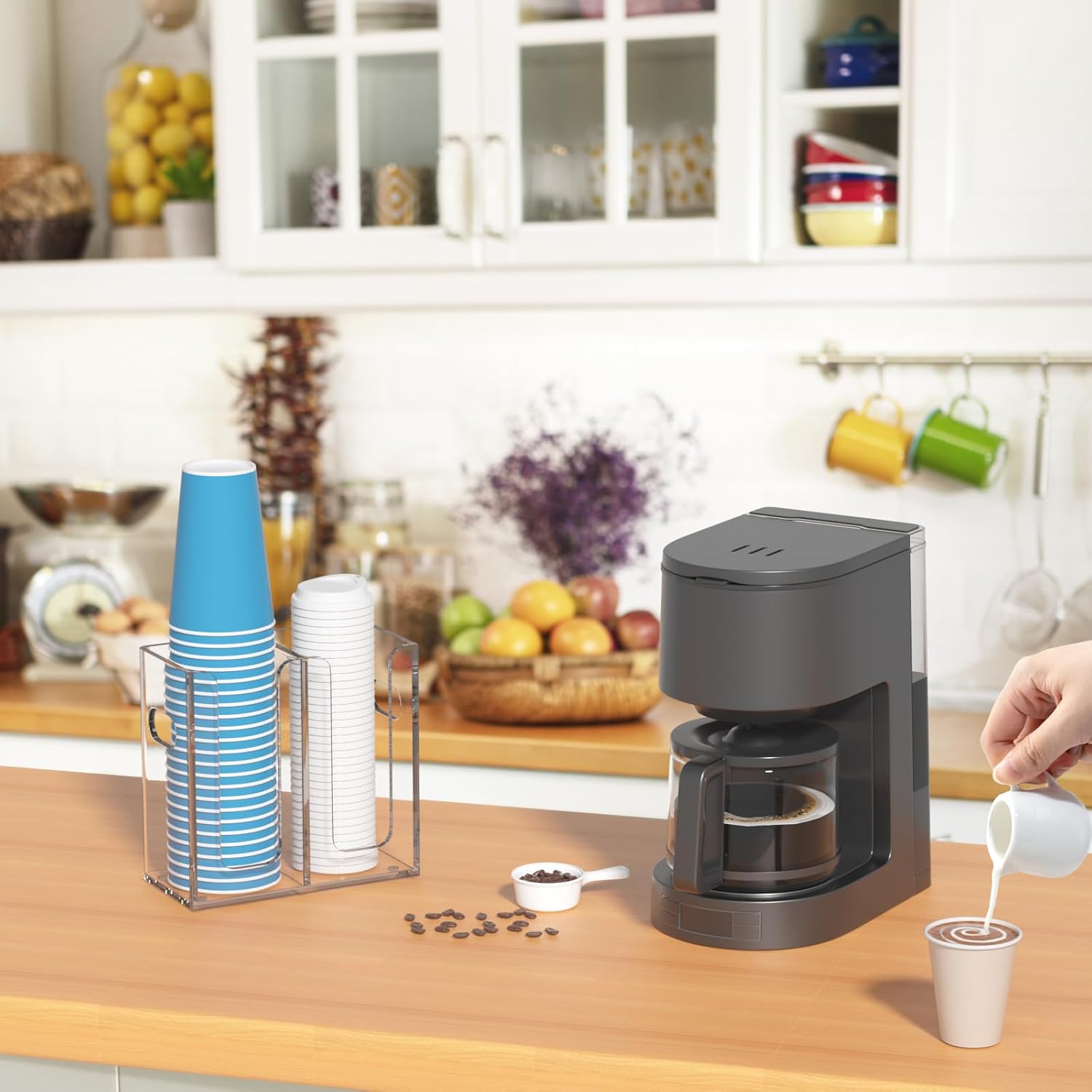 - MODERN: well made and durable, with a glossy surface, this functional acrylic coffee bar organizer features smooth rounded edges and polished surfaces, it complements various decor styles and adds a touch of elegance to your coffee maker area in the kitchen, disposable coffee cup holder for countertop can be used in coffee bar, office, breakroom, restaurant, church, RV, makes a nice hostess gifts for christmas party or family gatherings