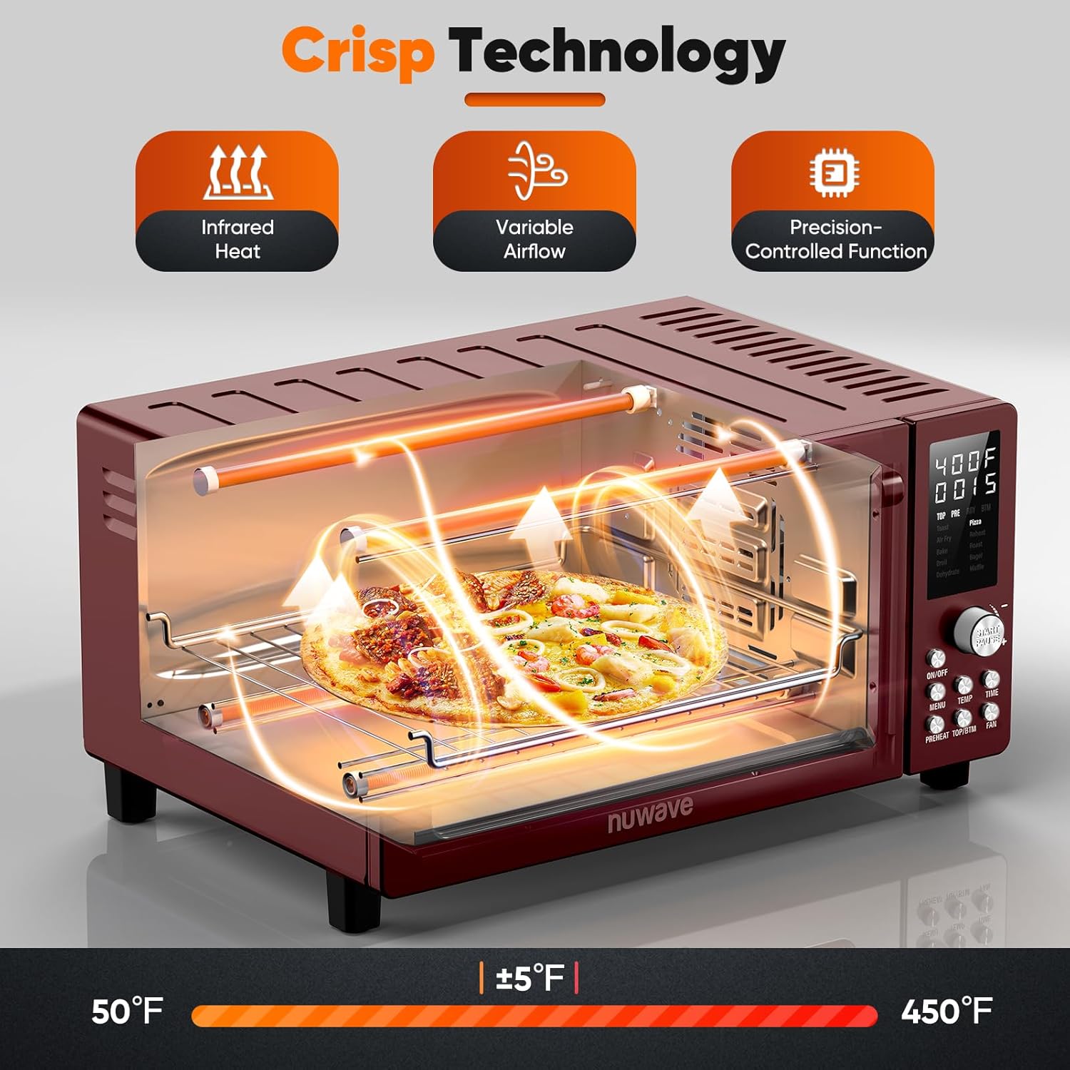 - 2X MORE EVEN: This Air Fryer Toaster Oven utilizes the latest 2024 upgraded Ultra-Fast Convection System, combined with top and bottom heating elements, virtually eliminating temperature variations even when cooking on multiple racks. Compared to other brands, Nuwave offers twice the uniformity and efficiency. Save you both time and energy.