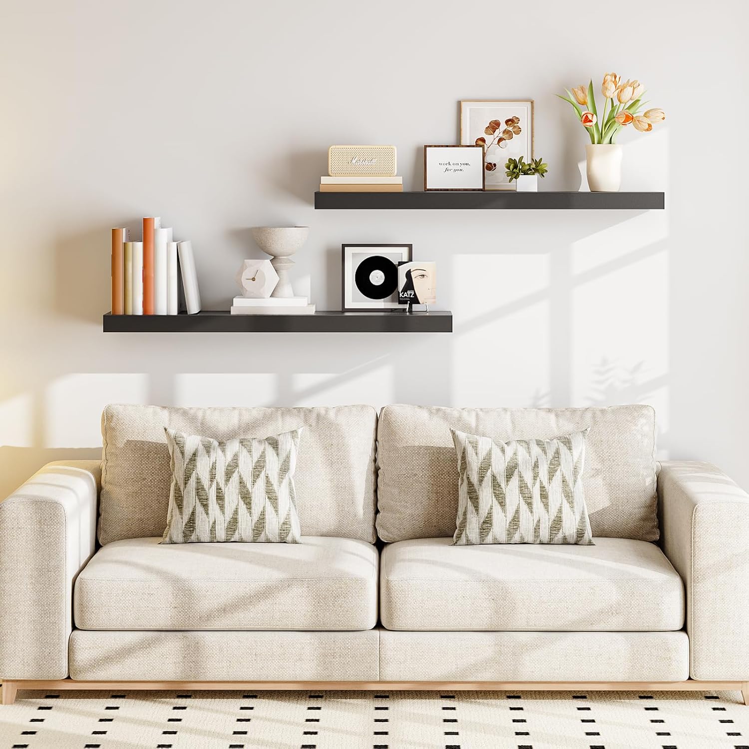 - Exquisite Wall Surface Decoration: Two classic and elegant black wooden shelves can be placed on each wall surface of all household rooms. This floating shelf for room wall is not only for its decoration effect, but also for this wall shelves high practicality. It is an ideal place to display your beloved photos, trophies and other delicate ecorations