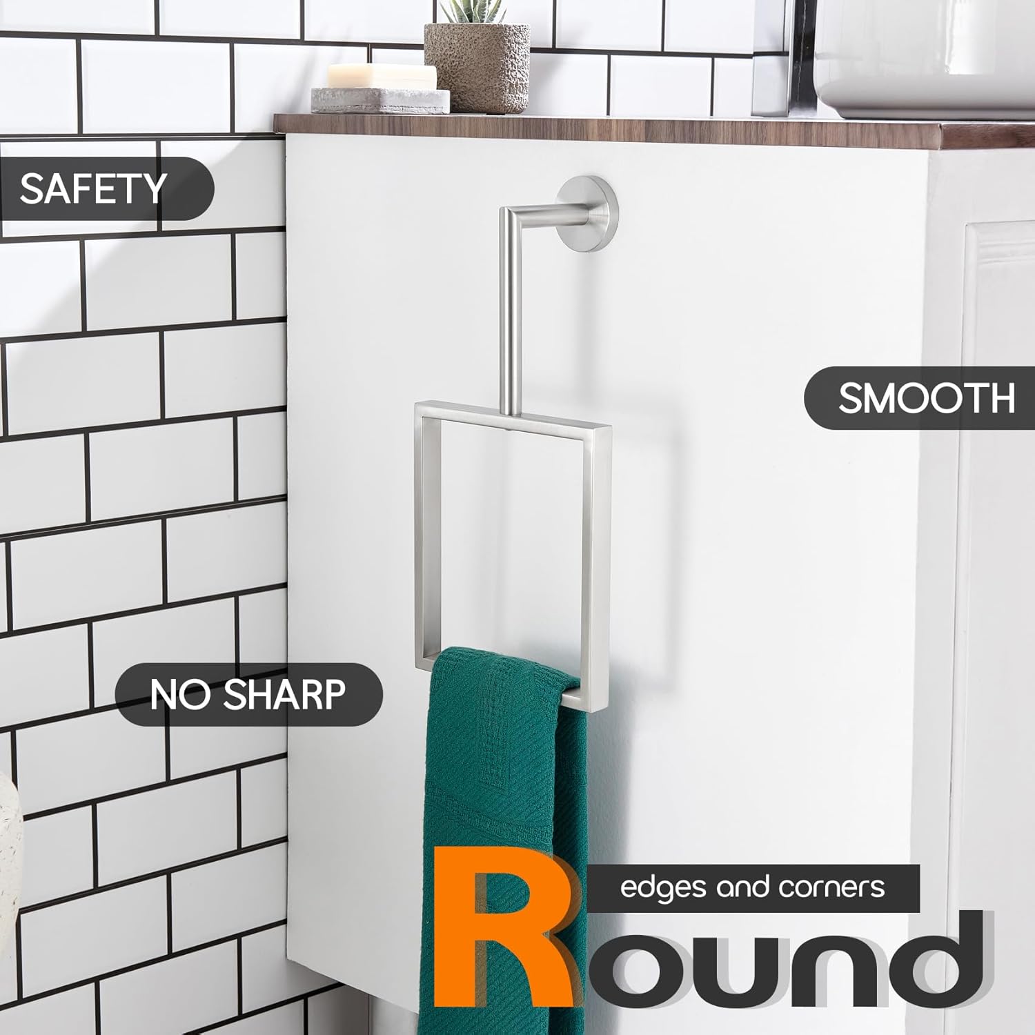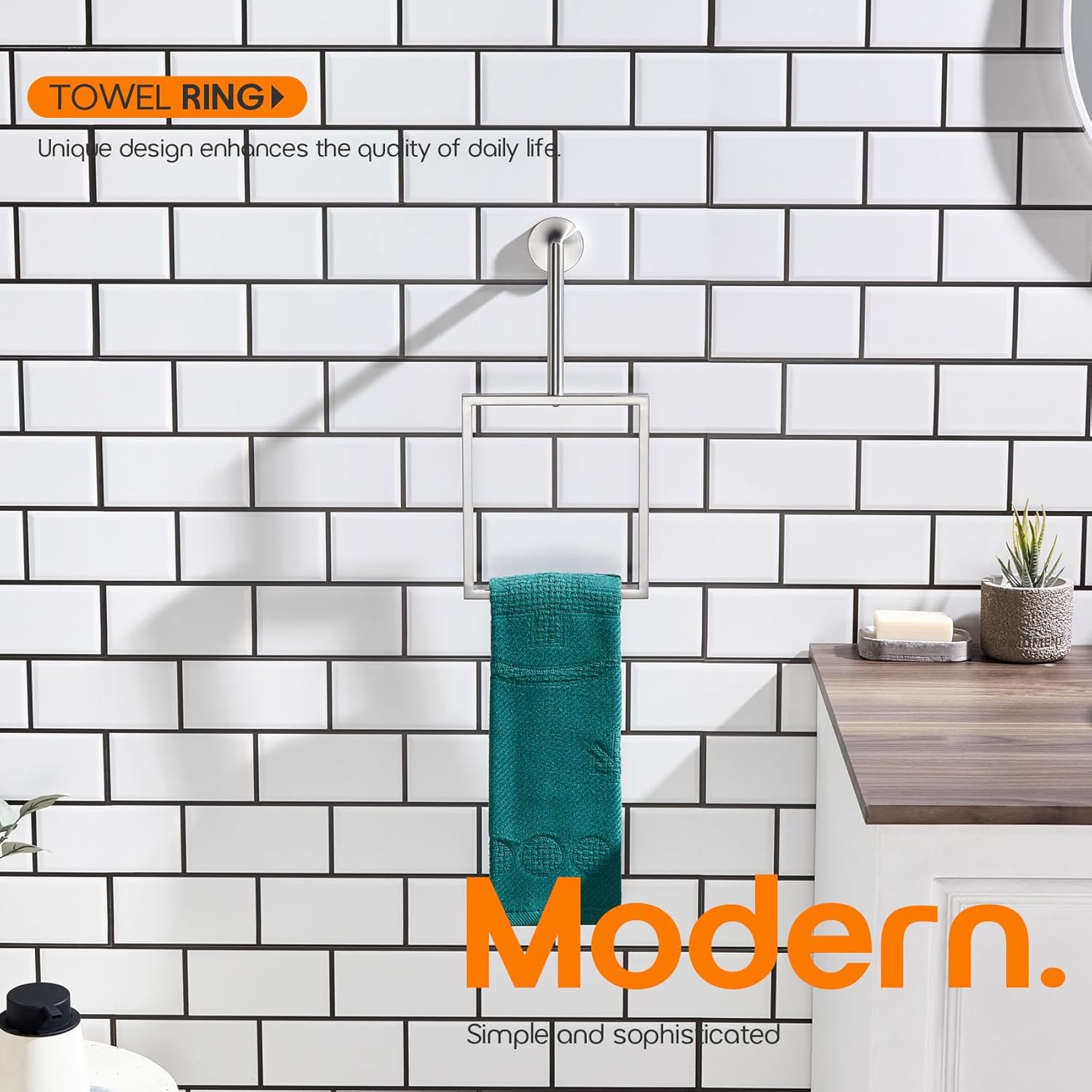 - ● MODERN DESIGN ● The bath towel rings combine elegant square, sleek round, and unique rectangle elements to bring a modern aesthetic to your bathroom, toilet, kitchen, washroom, or garage. You can choose from our series of bathroom hardware for a complete, coordinated look of your house