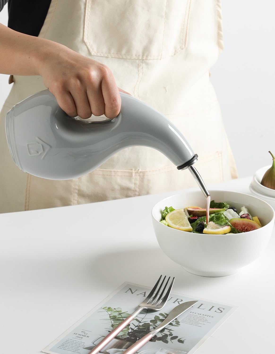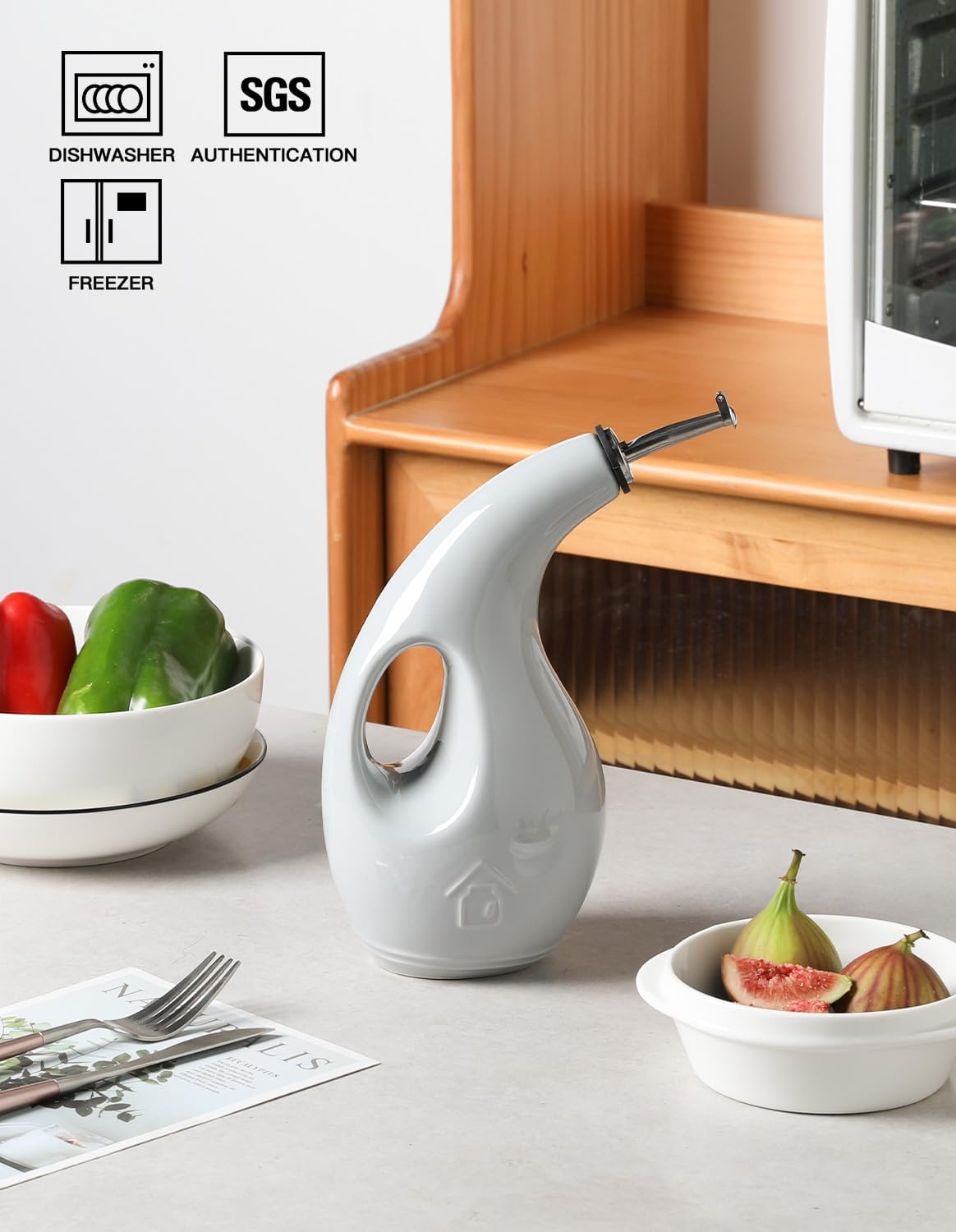 - Leak Proof & Keep Liquid Fresh - The bottle is made of durable ceramic that creates a smooth glaze. And the opaque porcelain bottle protects the oil from light and makes it last longer.