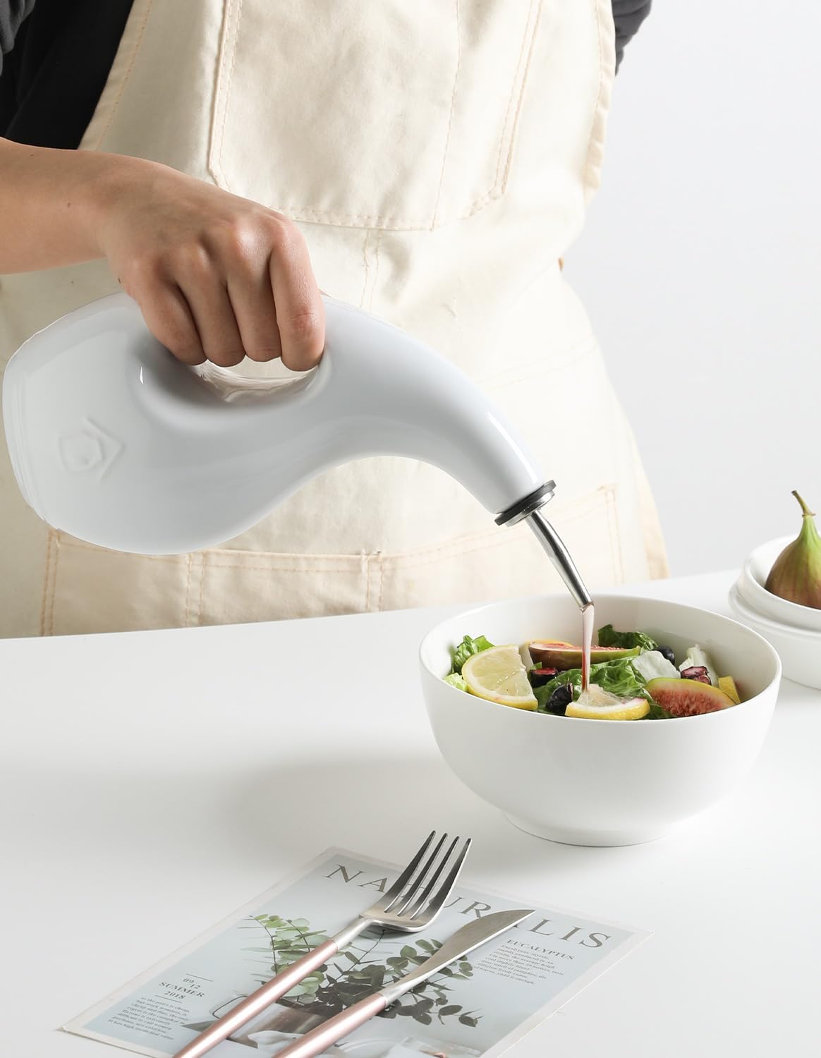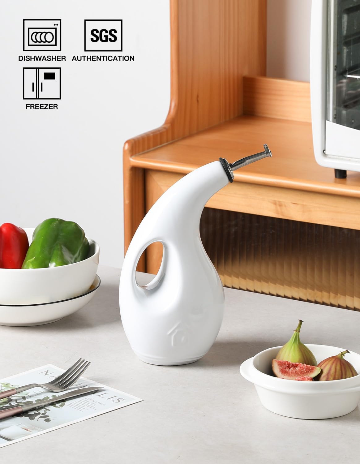 Sweejar Ceramic Olive Oil Dispenser Bottle,24 Oz Opaque Cruet Protects EVOO Oil to Reduce Oxidation, Suitable for Storage Vinegar, Coffee Syrups, Liquids (White)