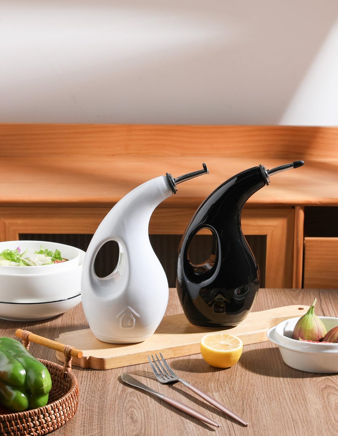 - Leak Proof & Keep Liquid Fresh - The bottle is made of durable ceramic that creates a smooth glaze. And the opaque porcelain bottle protects the oil from light and makes it last longer.