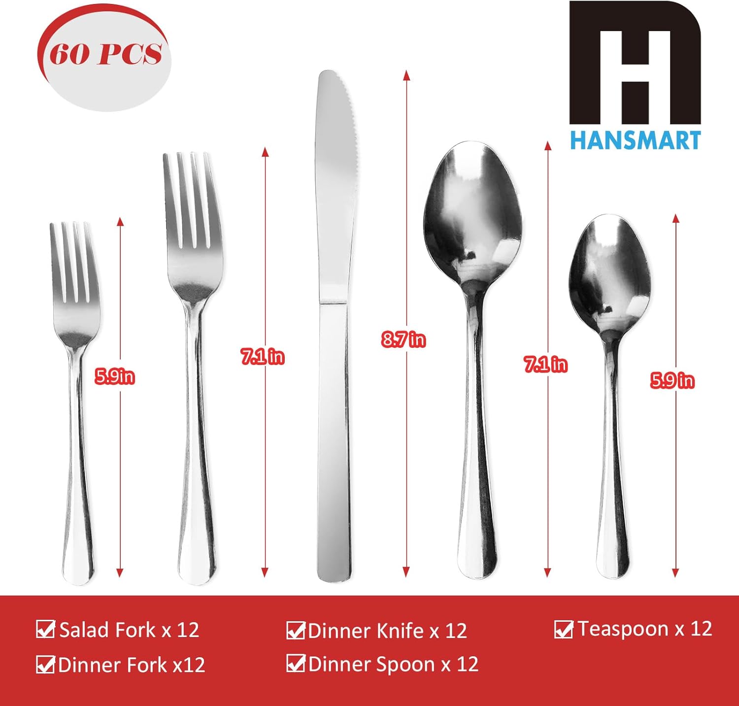 - COMFORTABLE GRIP AND BALANCED WEIGHT: Each piece of cutlery in our cutlery set is designed with ergonomic handles.