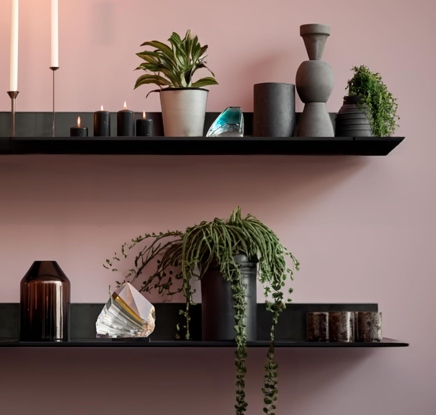 - DIMENSIONS & DETAILS: Measuring 30-inches long x 8-inches in depth, our steel floating shelf is made from 14 gauge raw steel and professionally powder coated black. The weight of the shelf is 6.5 LBS. It's perfect for displaying books, plants, bottles, picture ledges, and retail displays